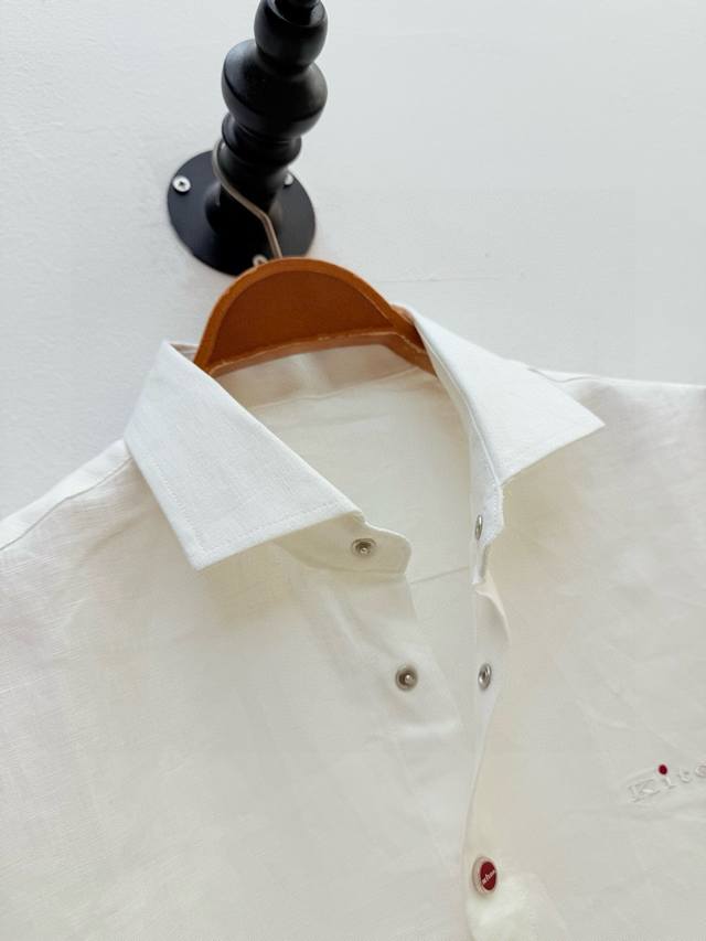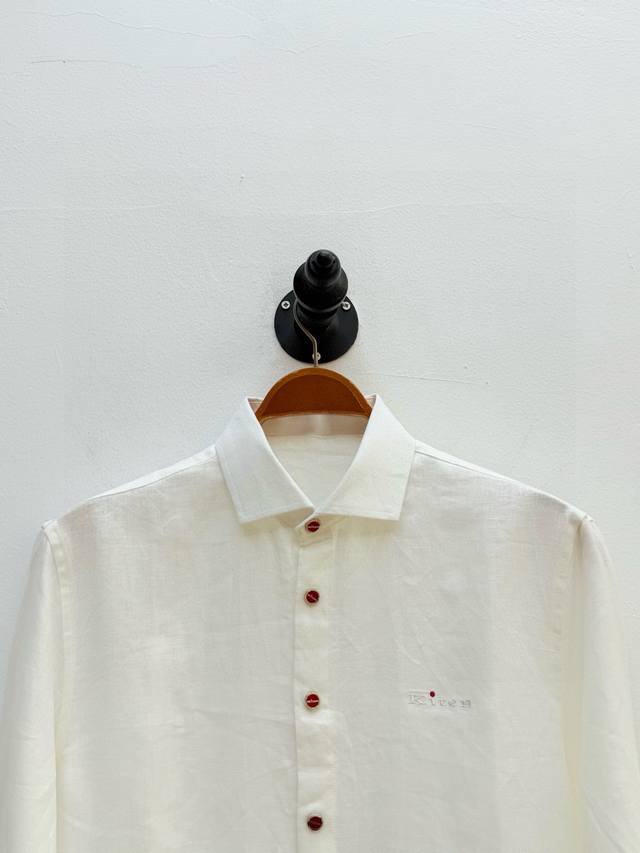 Kit logo-embroidered lapel linen shirt, produced by OEM factory P
