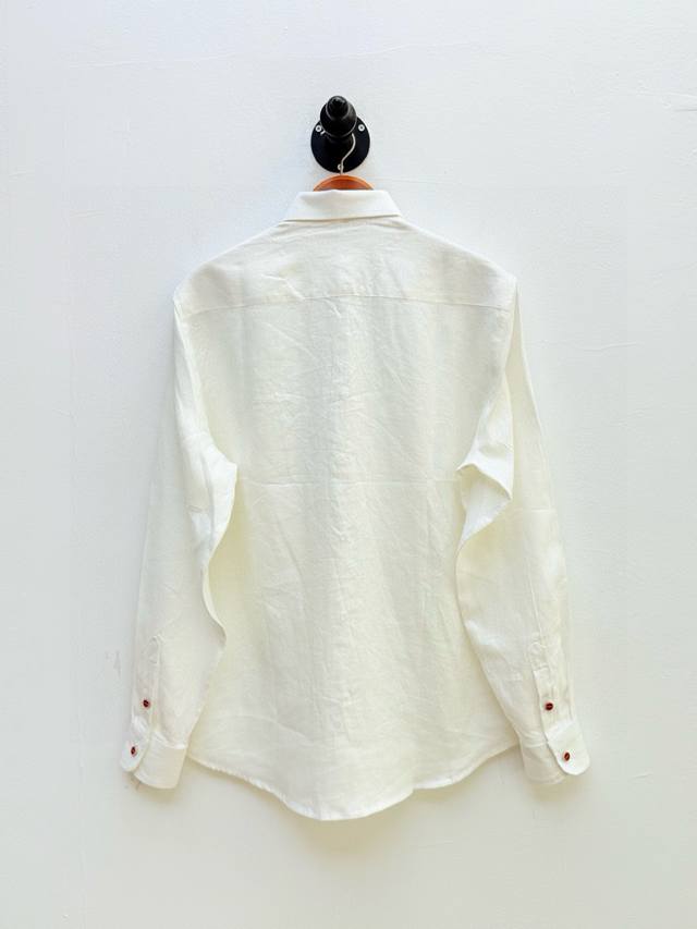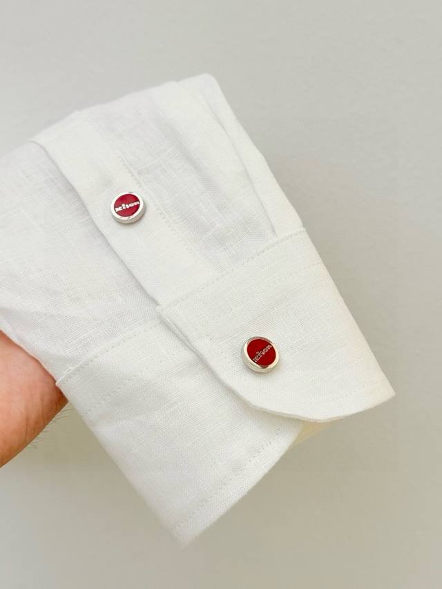 The brand logo embroidered on the chest with yarn in the same color is the brand's perfect interpretation of "quiet, self-voiced". The red spot on the letter "I" is like the afterglow of the sunset on the coast of Naples, which not only enlivens the visual rhythm of the entire shirt, but also implies the bloodline of Italian craftsmanship . This design is by no means a pile of exaggerated logos, but integrates the brand genes into daily wear, which is a typical expression of the old money style of "those who know will know". The snap button design replaces the traditional button and is decorated with a red logo, which not only strengthens the brand recognition but also makes it easy to wear. The double snap buttons on the cuffs can be flexibly adjusted for the degree of opening and closing, suitable for multiple scenes switching from the conference room to the seaside lounge.
