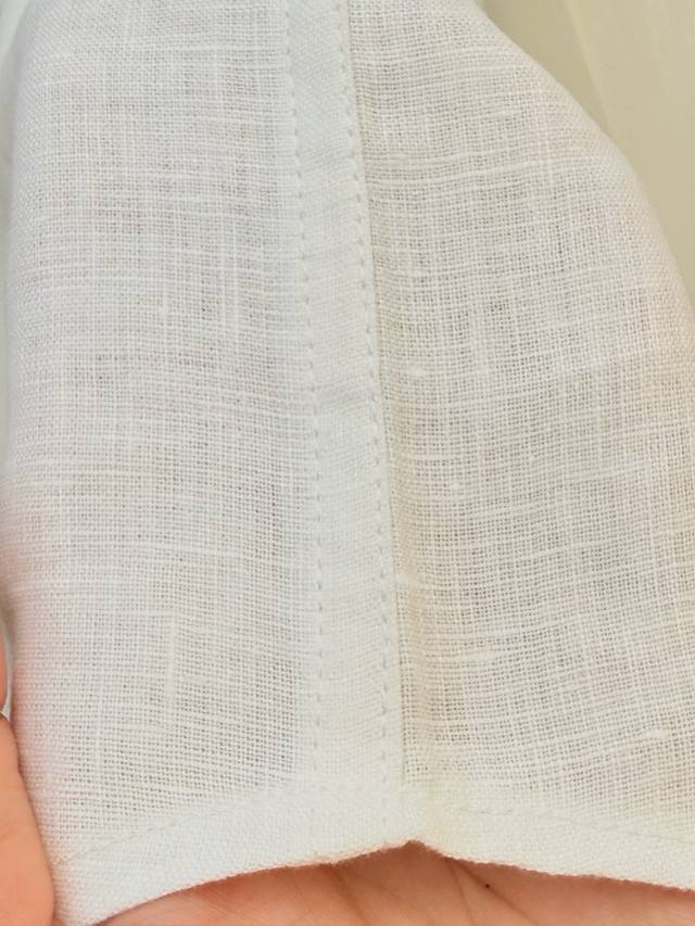 The fabric is 100% linen, with a natural texture that has not been over-processed, giving the fabric a unique dry touch and breathable texture. It feels like wearing a breeze in the summer. The slightly rough feeling at the beginning will become softer with wear, gradually fitting the body shape, forming a personalized "second skin" The natural wrinkles of linen are its soul mark. The item is woven through a high-count plain weave, so that the pleats are evenly distributed like fine waves, avoiding the messy feeling of cheap linen materials. The shoulder line droops naturally, and there is ample allowance under the armpits to ensure that there is no tightness on the back when raising the hands; the waist is slightly gathered but not constricting, which not only modifies the lines but also retains the flowing feeling of linen. It can be paired with linen shorts and a straw bucket hat. Unbutton one of the cuffs and roll it up to below the elbow to echo the leisurely atmosphere of the coast.