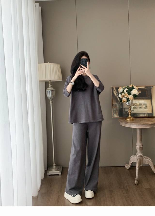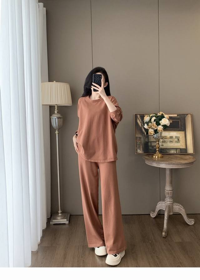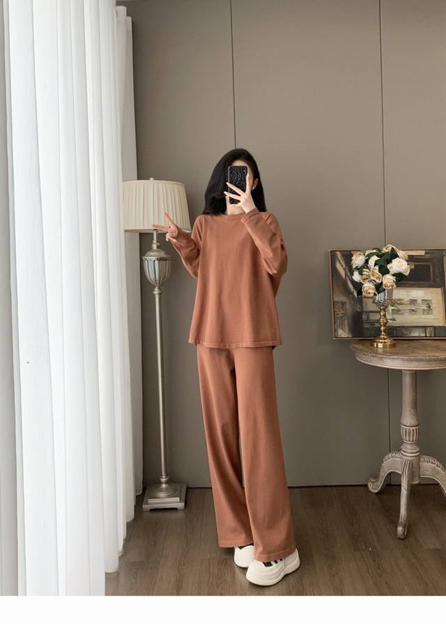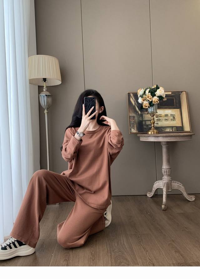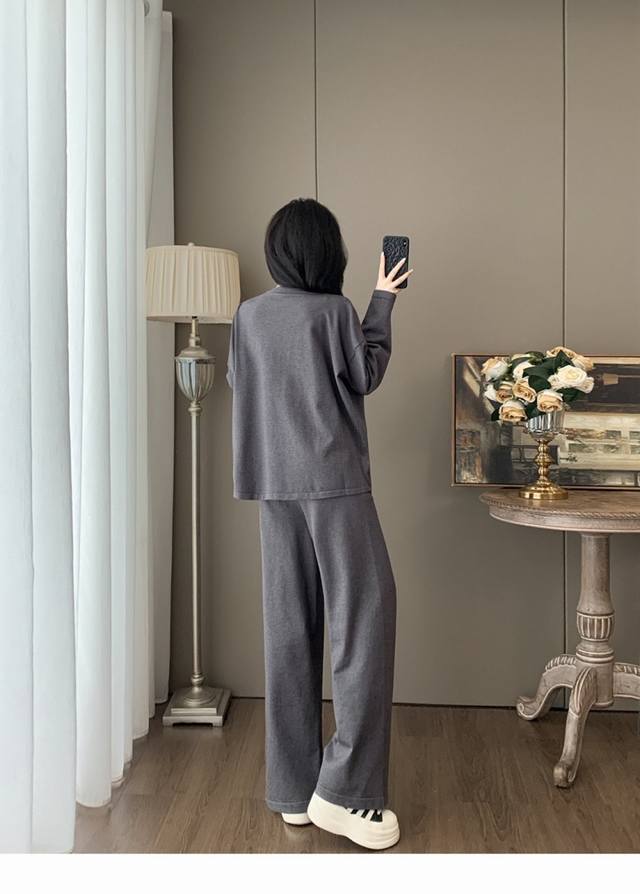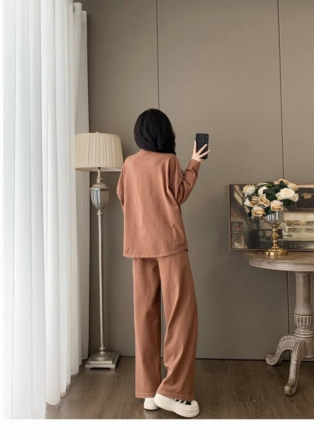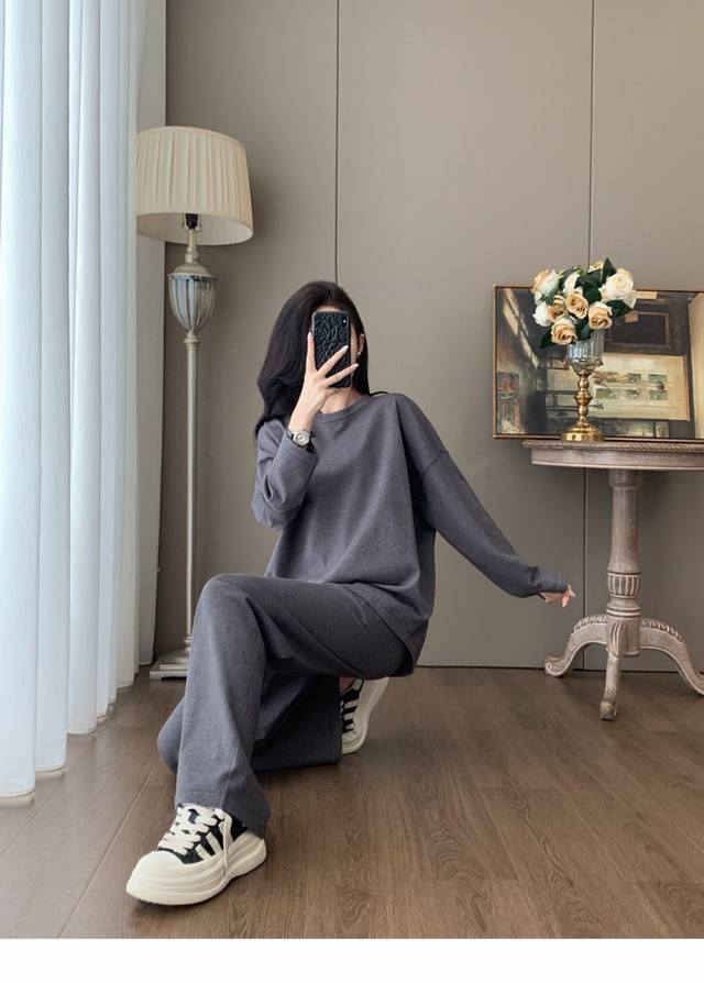Korean casual lazy style autumn new suit minimalist style loose feeling sweatshirt wide leg pants two-piece suit, two colors S-Xl
