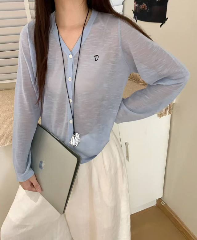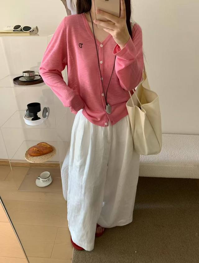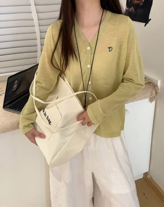 / Korean new style V-neck solid color simple versatile knitted cardigan top fashi