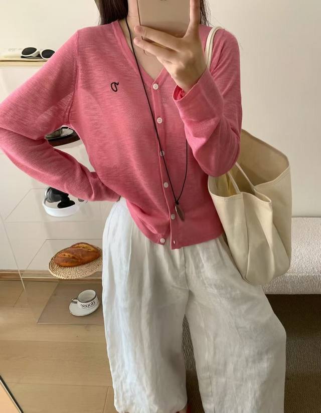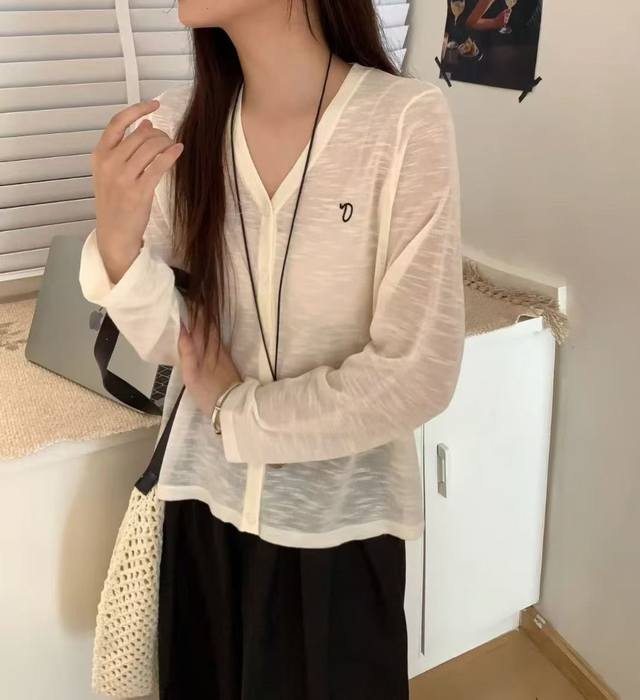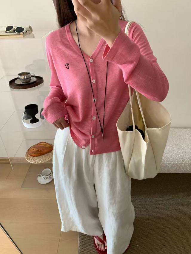 Korean new style V-neck solid color simple versatile knitted cardigan top fashionable and versatile