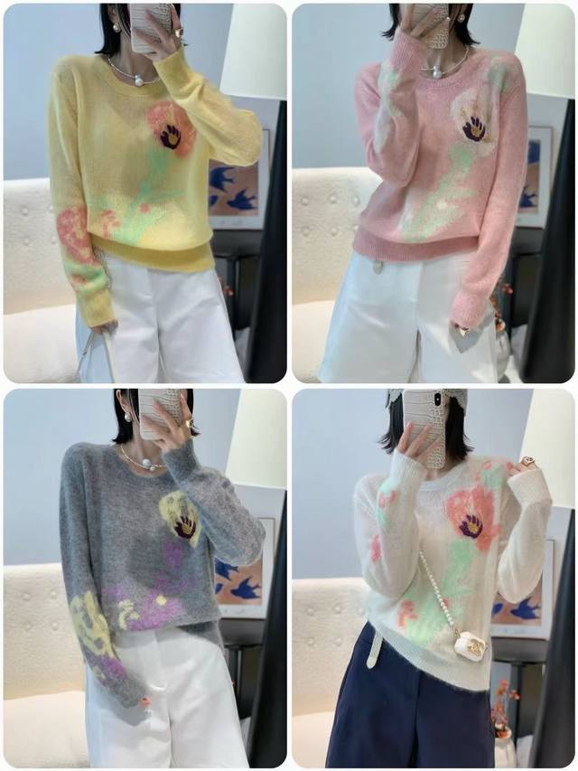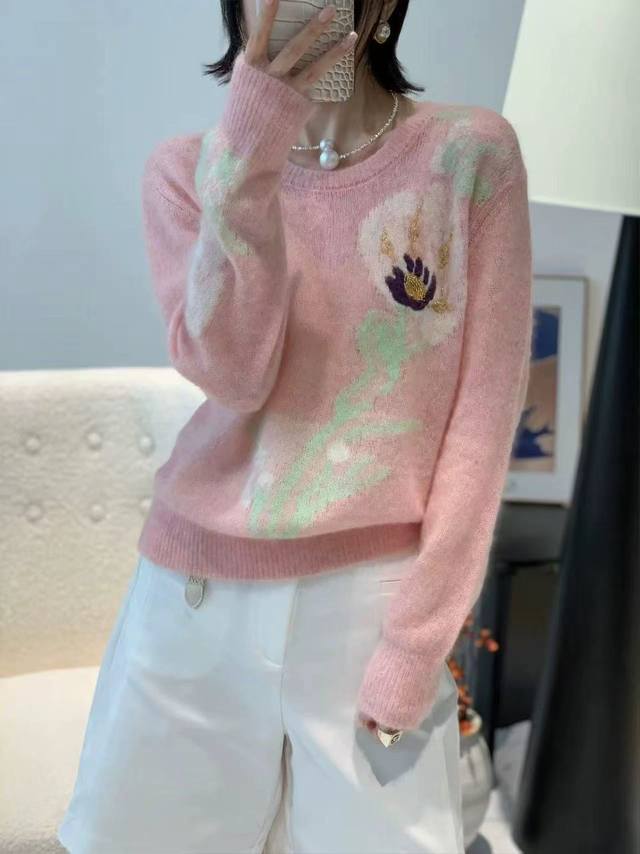 Korean version of the new long-sleeved round neck pullover sweater short style soft and thin knitted bottoming shirt one size silk cashmere