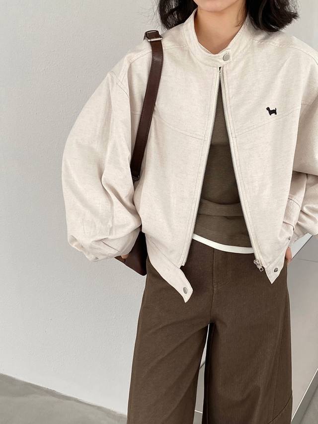 Korean workwear style old money puppy embroidered short coat female 25 autumn women's linen jacket top, two colors Sm
