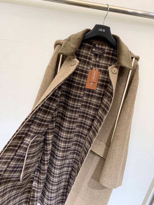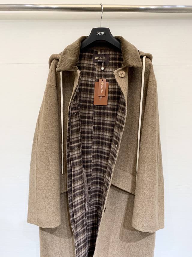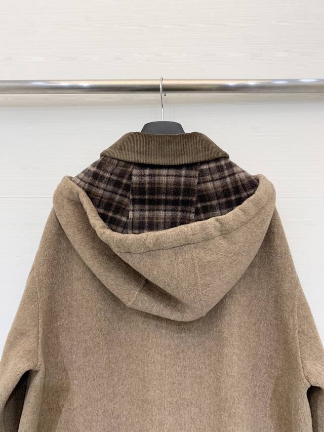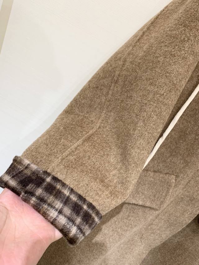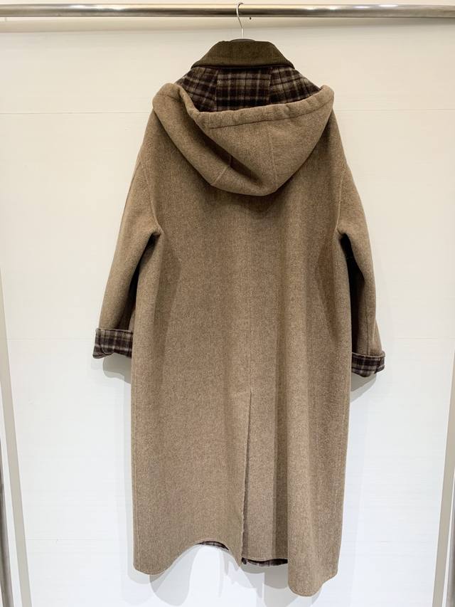 L A sophisticated long double-sided cashmere hooded coat with a lapel, custom-made from imported 10% cashmere and 90% wool fabric. The long, cocoon-shaped lapel and plaid lining add a retro touch. The simple cut highlights the high-quality fabric, creating a gentle and delicate look reminiscent of a Korean leading lady. It exudes elegance and will make you the center of attention, whether for everyday outings or business meetings. Sizes S and M are available, while sizes D and D are also available.
