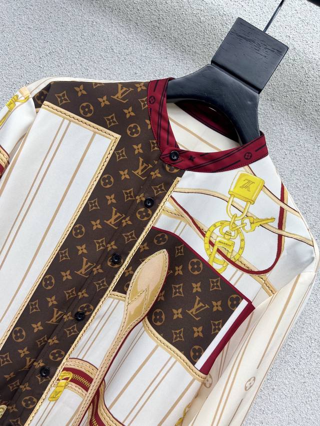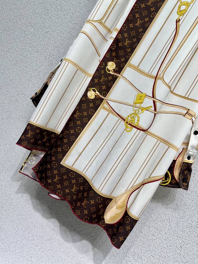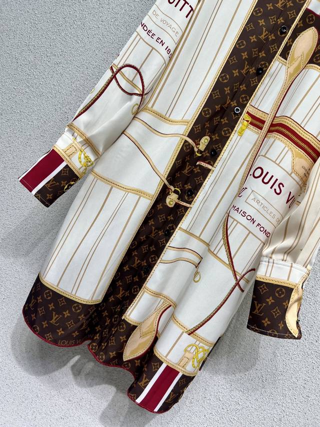 L brand color-blocked print shirt dress. Monograff print exudes a sophisticated and elegant feel. The innovative fabric is lightweight and soft, and the actual product is fantastic! It looks chic and versatile when worn, and is absolutely gorgeous! High quality, sizes S, M, X, L, D, D.