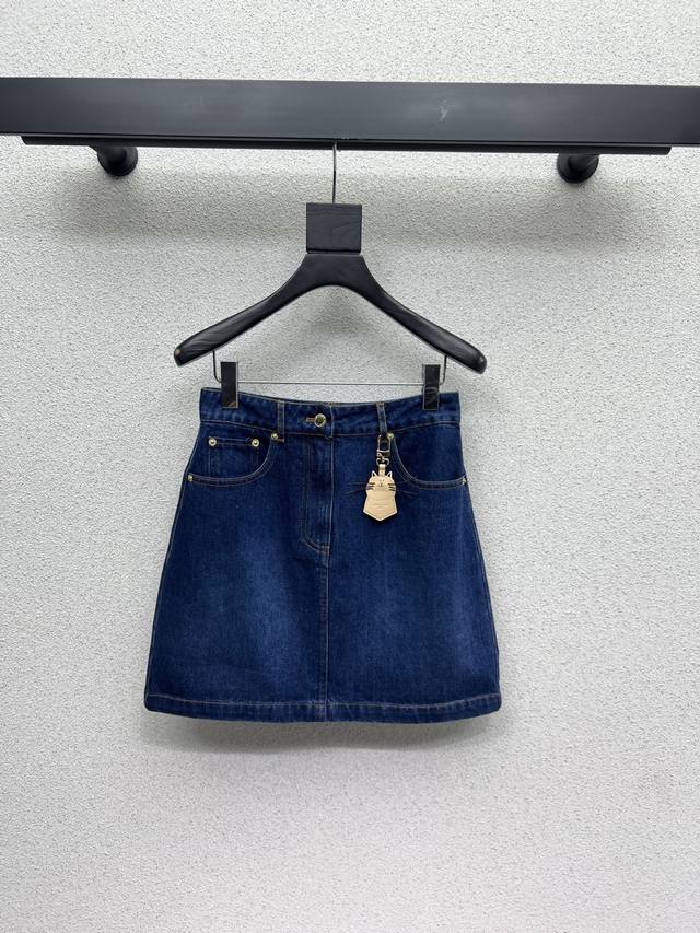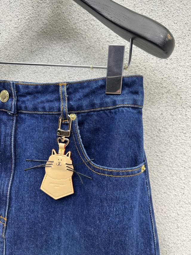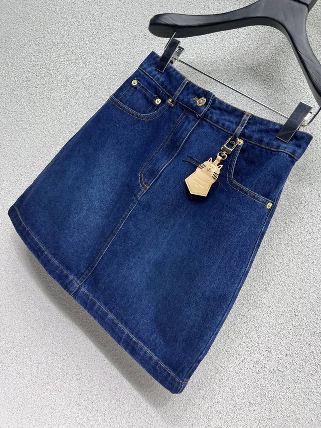 L Family Series Cat Leather Label Denim Skirt. A playful and youthful design element perfect for everyday wear, full of energy. High quality. Sizes: S, M, XL, D.D.
