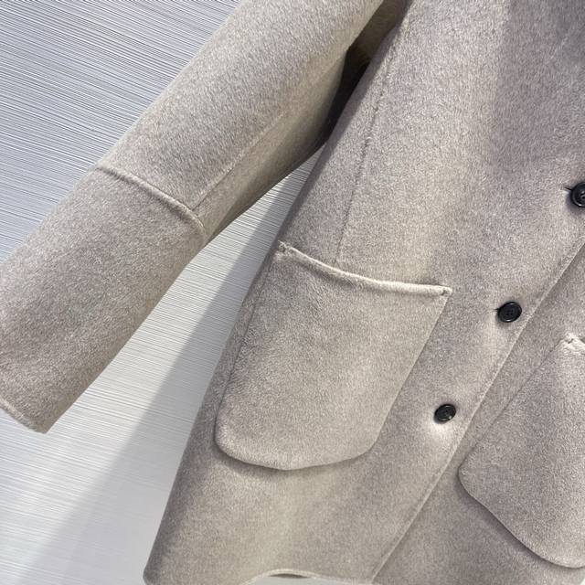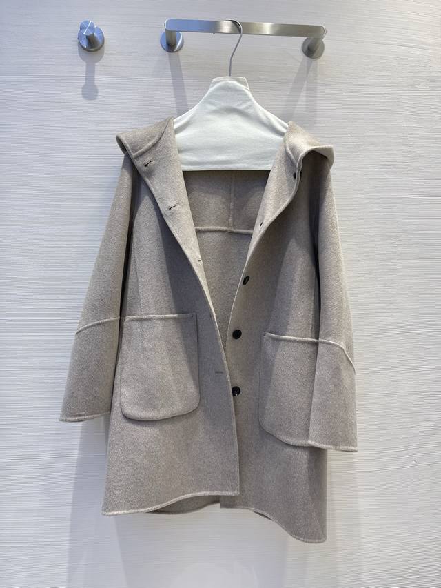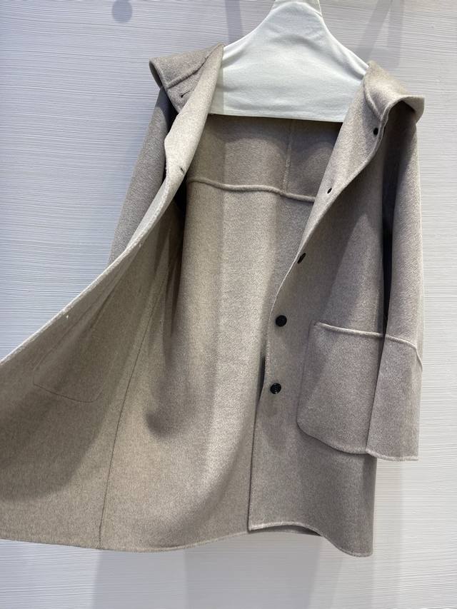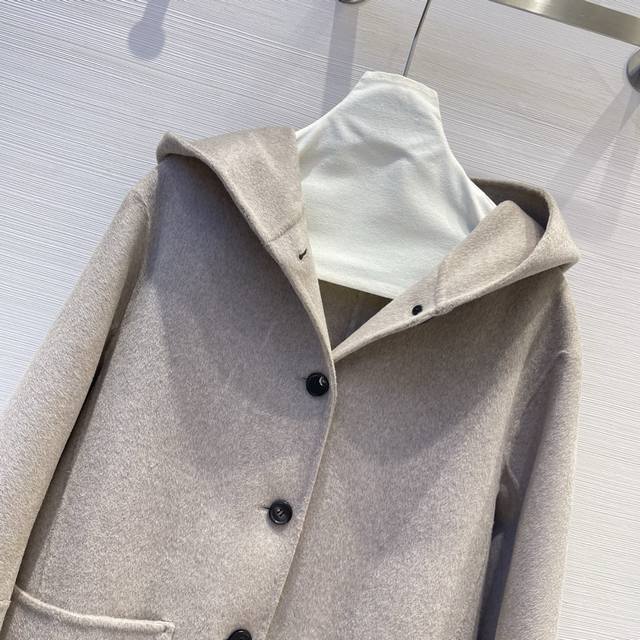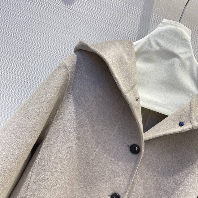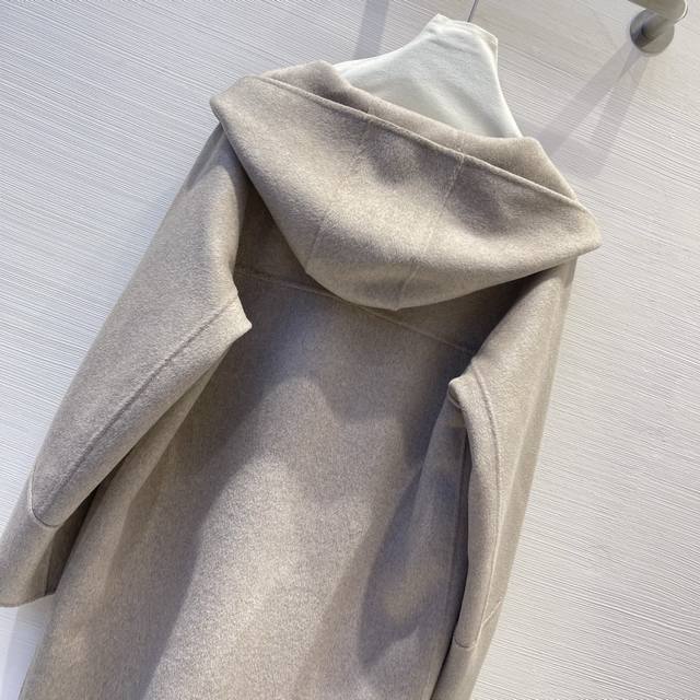 / l Ss Autumn and Winter - Oatmeal Hooded Cashmere Coat Made of 90% wool, 10% cash