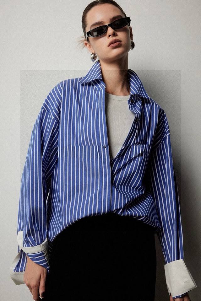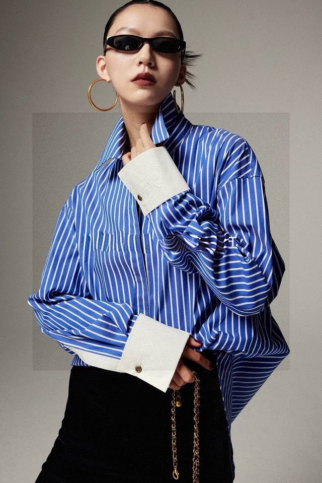 Large quantity available! ! Cuff embroidered shirt! Effortless style, custom embroidery, classic boyfriend style striped shirt, inner top for women, autumn and winter. Fabric: nylon cotton striped