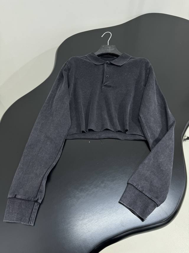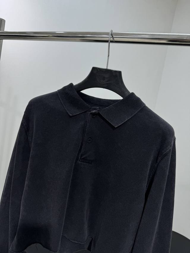 Laurel Classic New Arrival: Long-Sleeve Polo Shirt Made of black pique cotton fabric. Classic polo collar design. Unfurled hem. Button-down collar. Heavy wash finish. Unisex. Black.