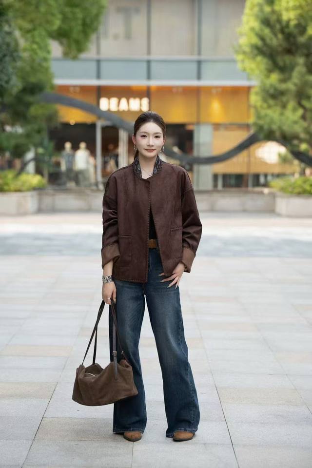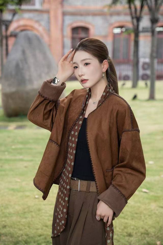 Lazy and loose sheepskin coat, the fine sheepskin texture is warm and delicate, and the loose silhouette interprets a unique and elegant tone. Smlxl