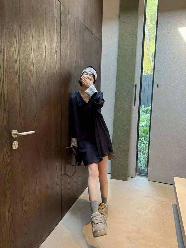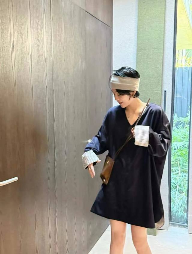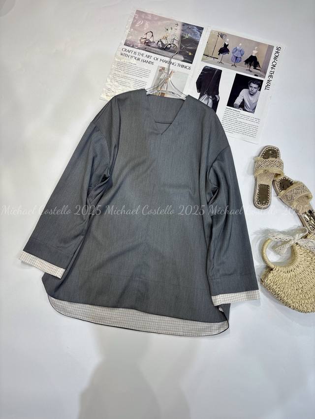 Lazy style V-neck temperament suit long top Simple V-neck design easily outlines