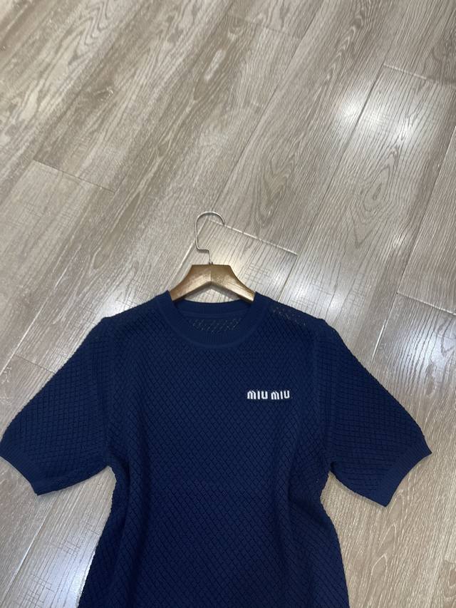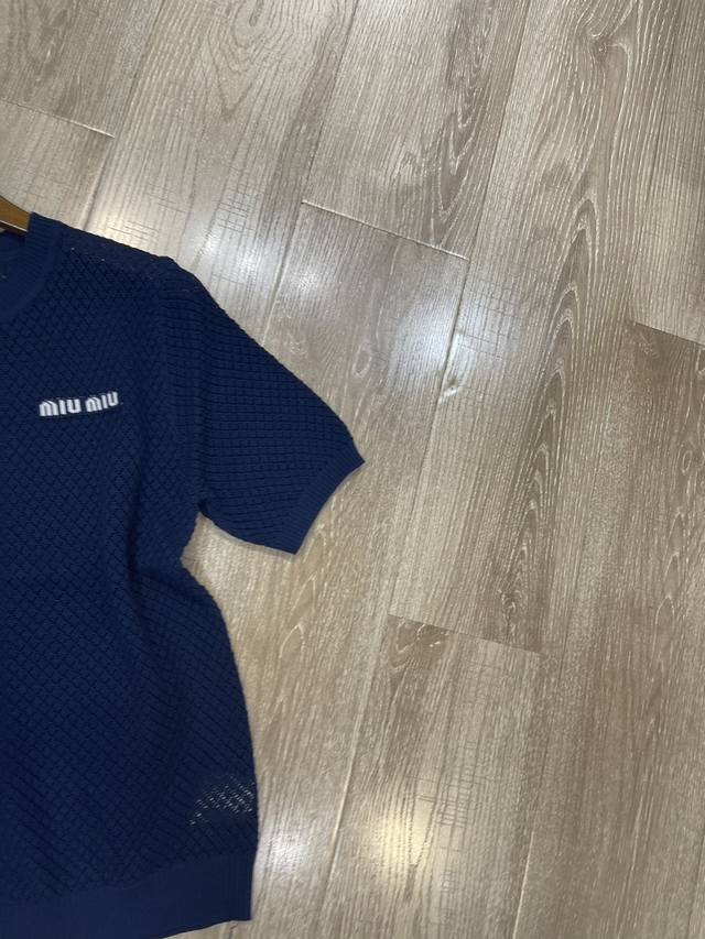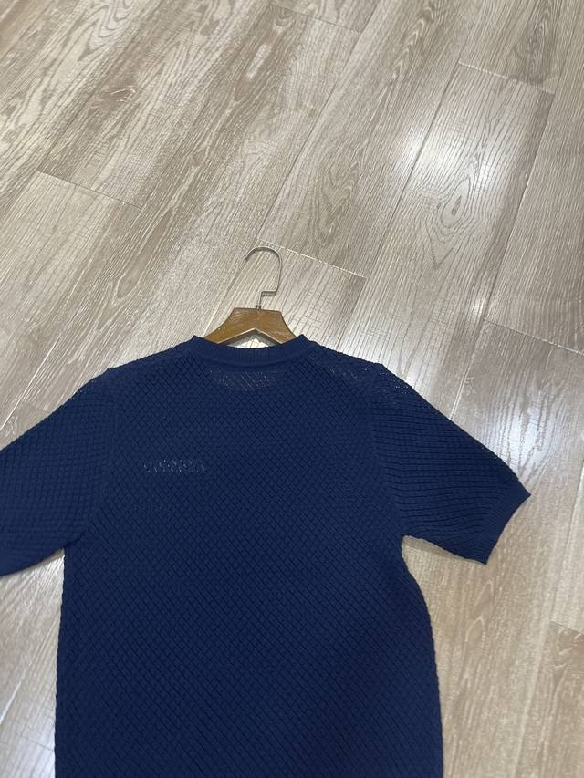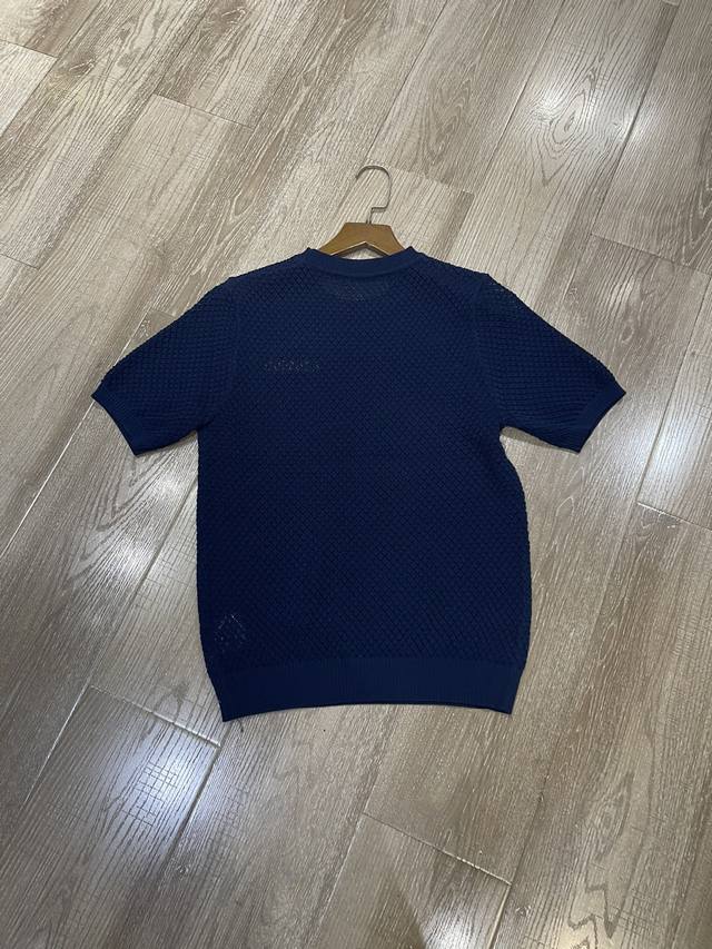 Letter jacquard diamond grid hollow round neck short-sleeved T-shirt 2025 early