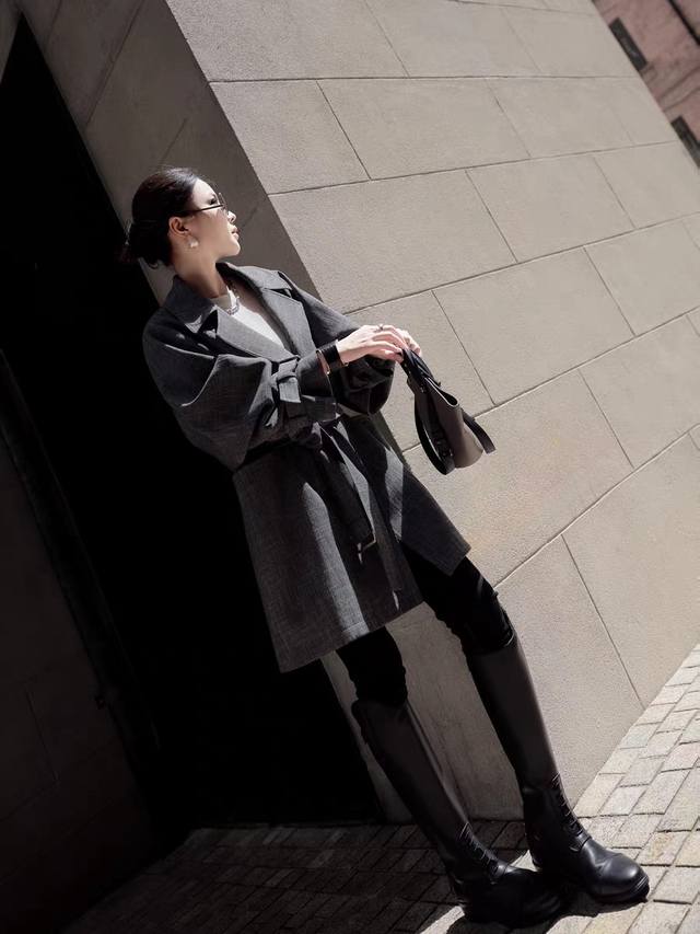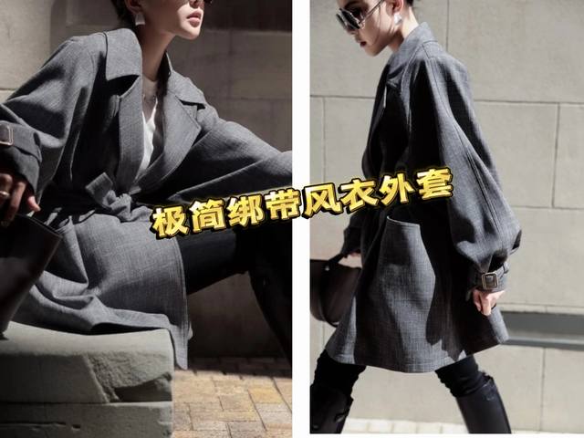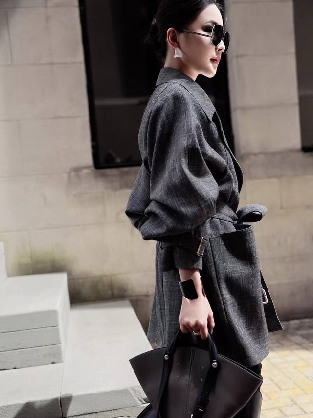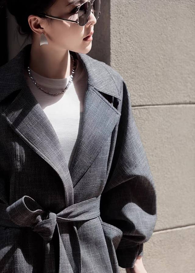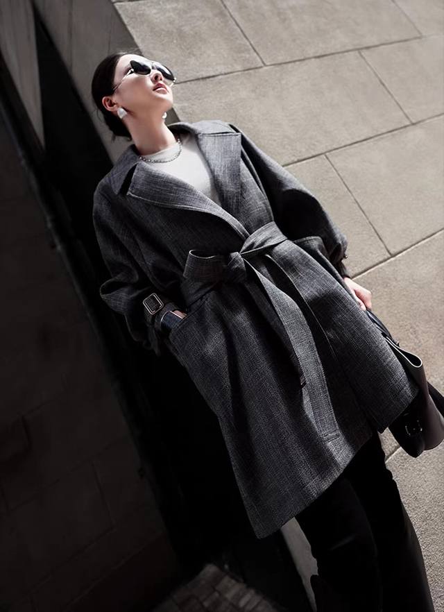 Light luxury retro minimalist old money style boutique wool blend trench coat! High-end British style temperament waist lapel silhouette classic trench coat! Classic gray, versatile and textured! Smlxl
