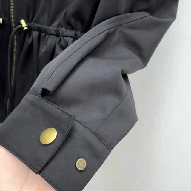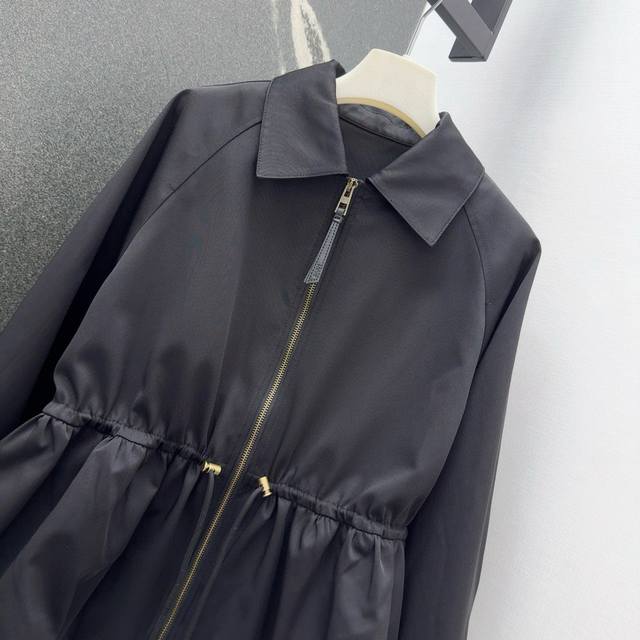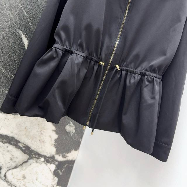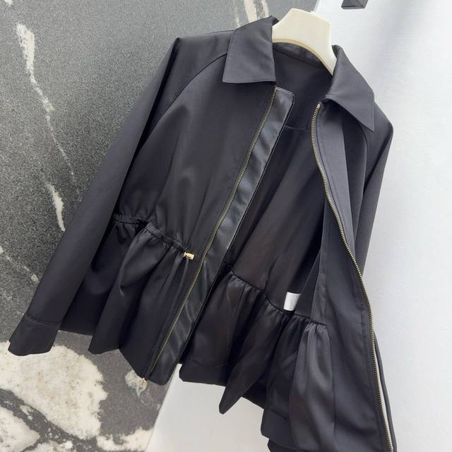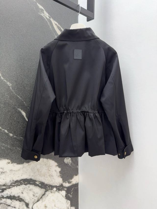 Loe 25Ss Early Fall New Arrival Lapel Jacket with Drawstring Waist Design and Flower Bud Puff Hem Design. A Stunning Dark Functional Style, Extremely Practical, Classic Logo, Low-Key Fashion, Loose Straight Legs with Drawstring Waist Design for a Slimming, Casual, and Lazy Style. Perfect for Young Girls, Sweet or Salty. Size S: Bust 110cm, Length 60cm.