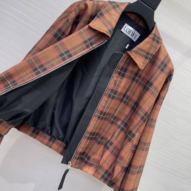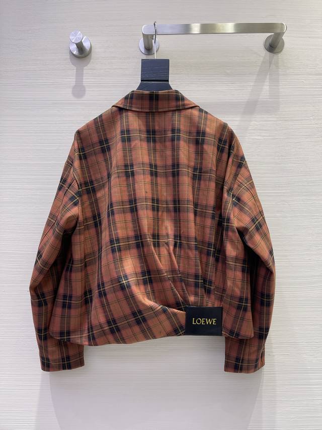 Loe* Retro Plaid Back Leather Patchwork Trench Coat Retro Plaid Design Logo Zipper Design Back Patchwork and Leather Patch Design Elegant Look DDD Single Color DDD Sml DDD