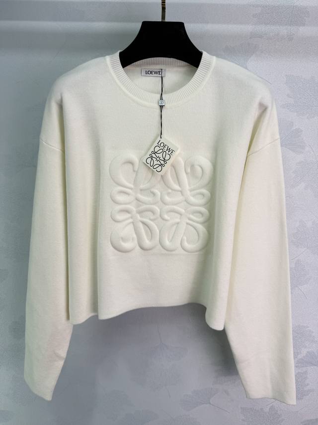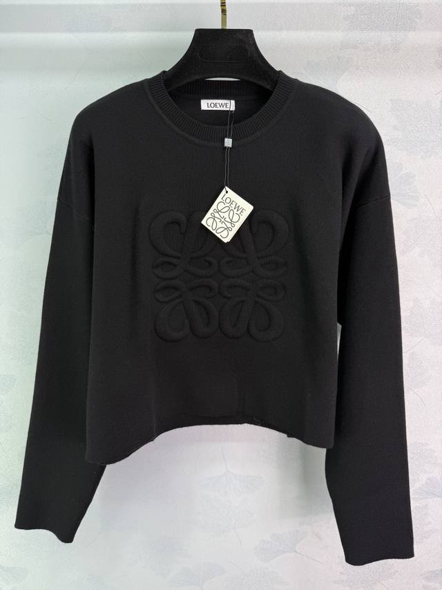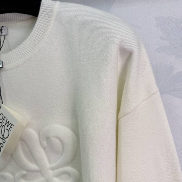 Loe*2025 Autumn/Winter New Knit Sweater. Classic logo embossed design, comfortable and textured fabric, loose fit creates a relaxed and casual atmosphere with a strong sense of style! 2 colors, 3 sizes (S, M, L). T226B.