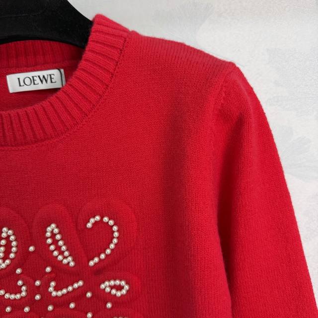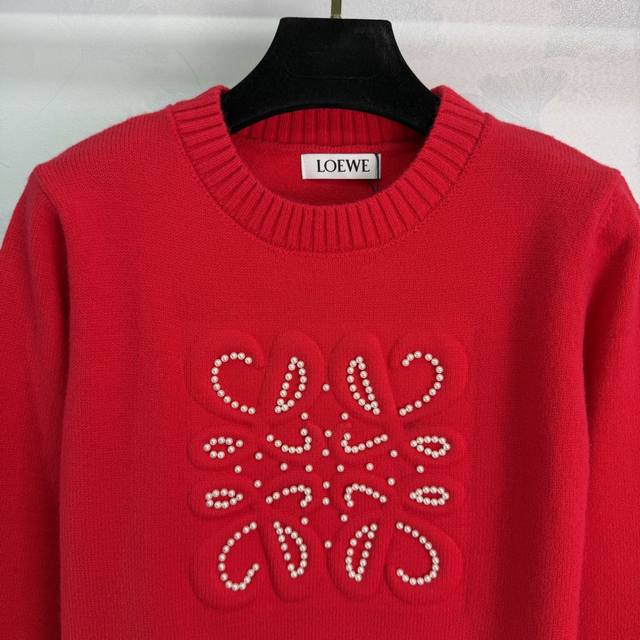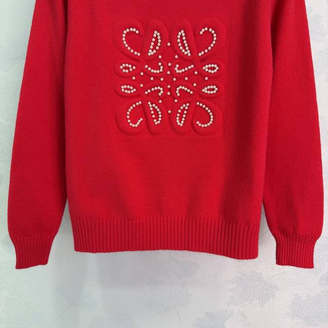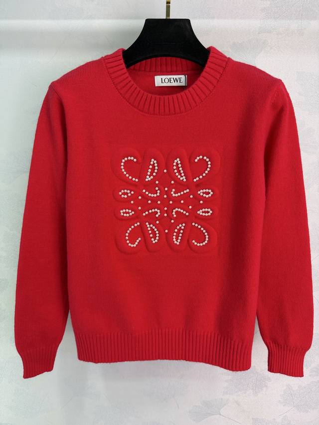 Loe*25 Autumn/Winter New Beaded Wool Sweater. The round neck design is simple and elegant, with exquisite beaded patterns on the chest. The retro yet luxurious wool material is soft and skin-friendly. The red version is full of festive spirit, while the black version is versatile and suits everyone. Perfect for everyday wear or holidays! 2 colors, 3 sizes: S, M, L, T226B. DDD