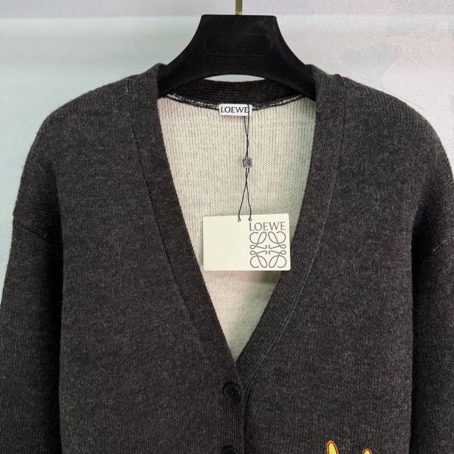 Loe*25 Autumn/Winter New Cat-Themed Collaboration Cardigan, Dark Grey Wool Blend, Soft and Warm, Perfect for Autumn and Winter Wear. 1 Color, 3 Sizes: S, M, L, T226B, DDD