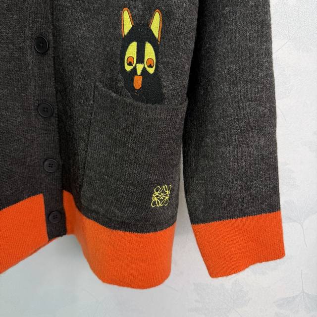 Loe*25 Autumn/Winter New Cat-Themed Collaboration Cardigan, Dark Grey Wool Blend
