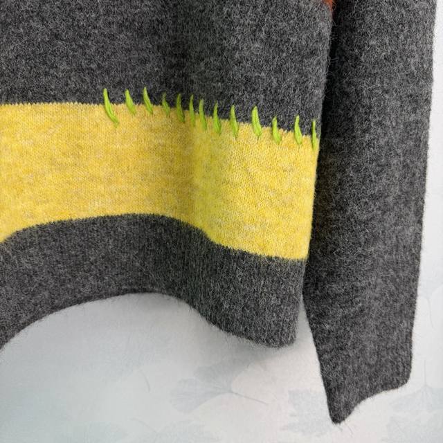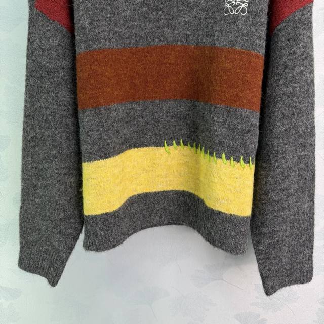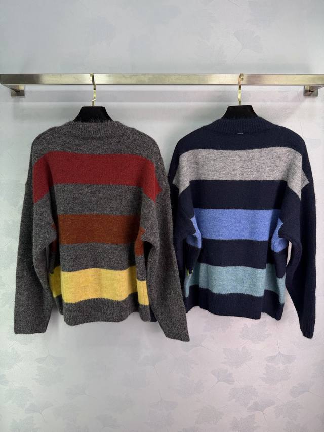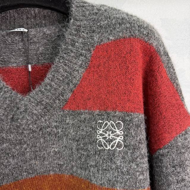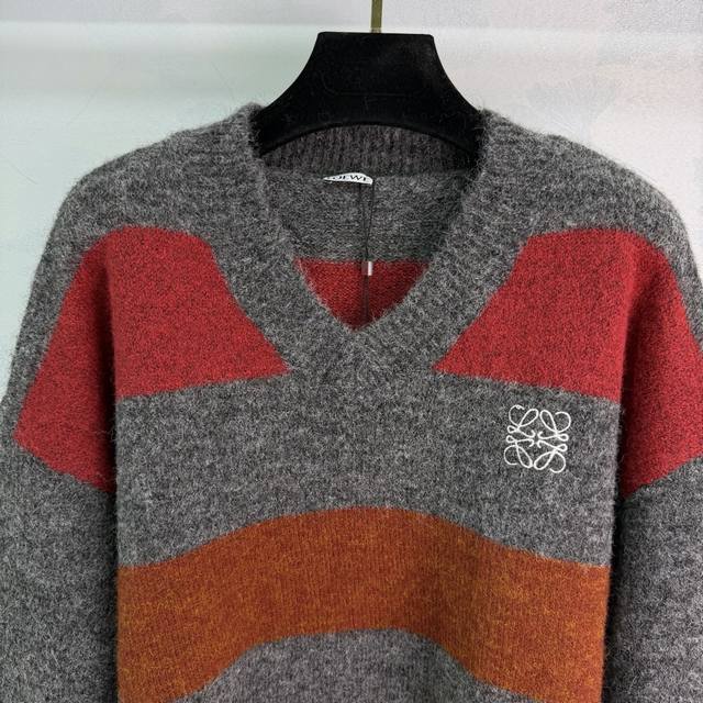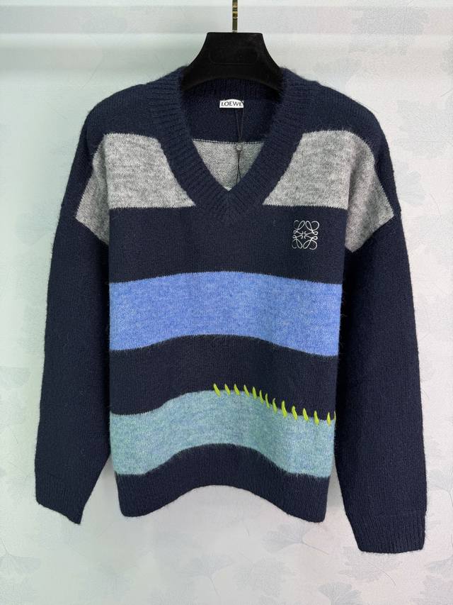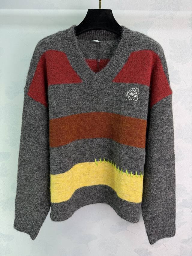 Loe*25 Autumn/Winter New Color-Blocked Striped V-Neck Sweater. Made of a wool blend, it's soft and warm. The V-neck design flatters the neckline and is easy to put on and take off. The color-blocked stripes are super vibrant, perfect for everyday casual wear or layering under a coat. The loose fit is forgiving and can be worn alone or as a base layer, easily creating a layered look. 2 colors, 3 sizes: S, M, L, T226B, DDD