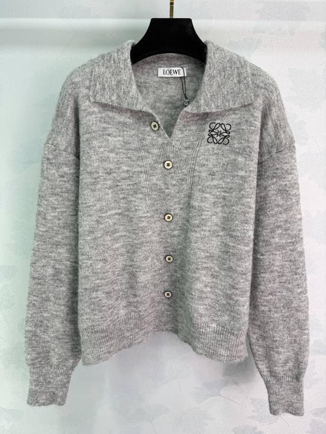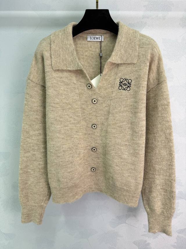 Loe*25 Autumn/Winter New Knit Top. The soft knit fabric is super comfortable. Features a lapel collar and front button design, with a detailed embroidered logo on the chest. The regular fit is flattering for various body types. Looks great with jeans or skirts. Suitable for both work and casual wear. Practical and stylish. 2 colors, 3 sizes: S, M, L, T226B. DDD