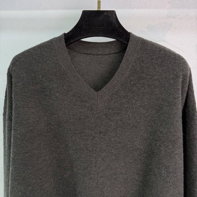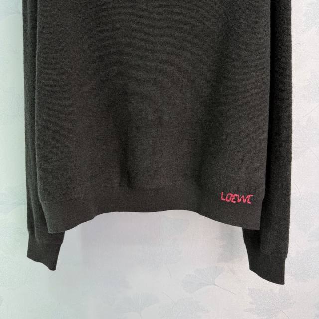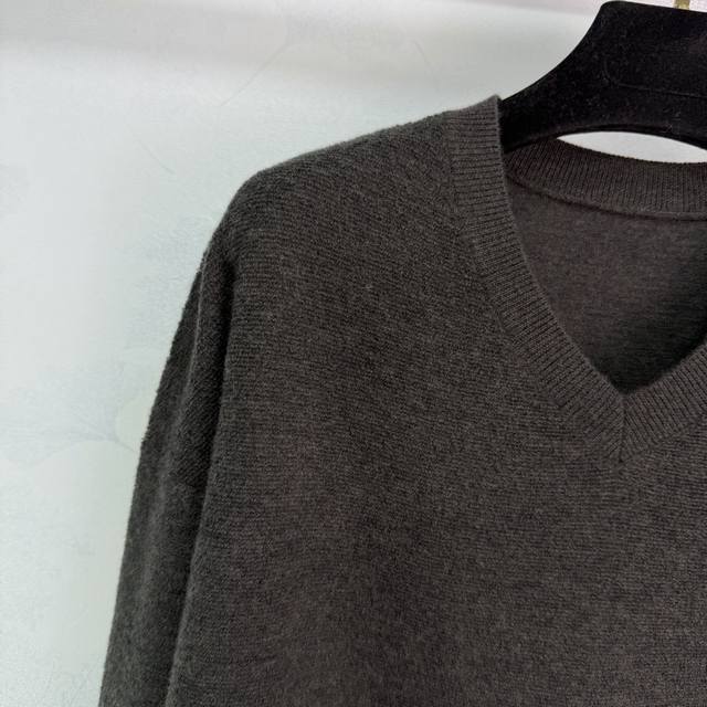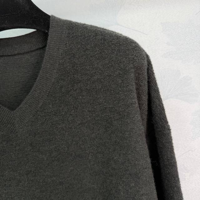 Loe*25 Autumn/Winter New V-neck Wool Knit Sweater, soft and skin-friendly, with a red embroidered logo in the lower left corner, understated yet recognizable. The slightly oversized fit and small V-neck flatter the face and create a relaxed, casual look. Perfect for wearing alone or layering, suitable for both work and leisure. 1 color, 3 sizes: S, M, L, T226B, DDD