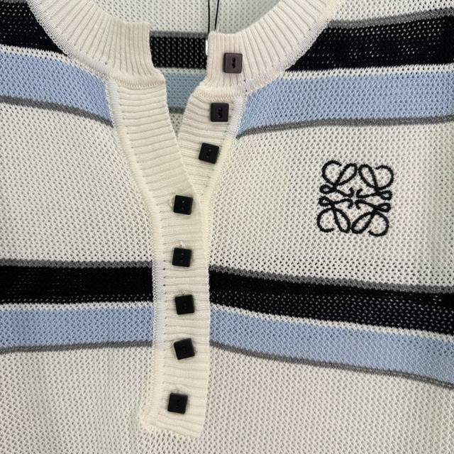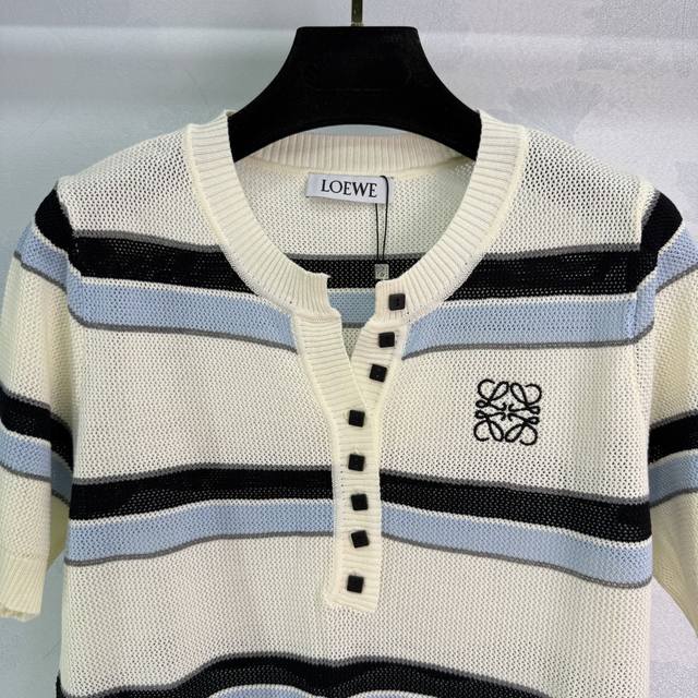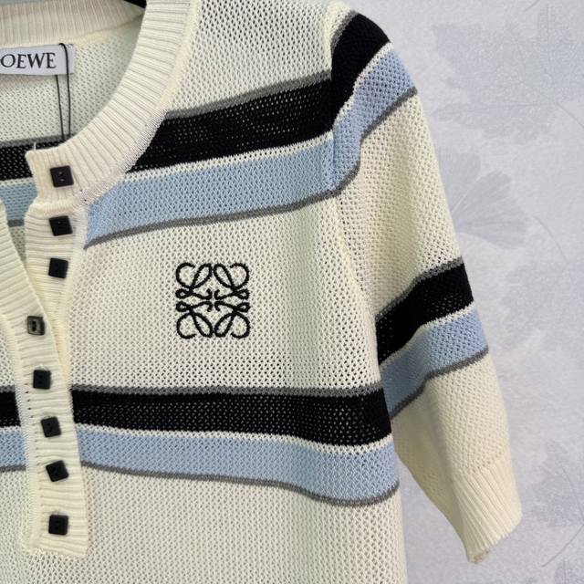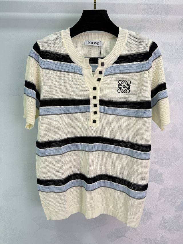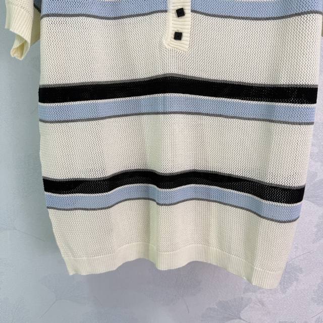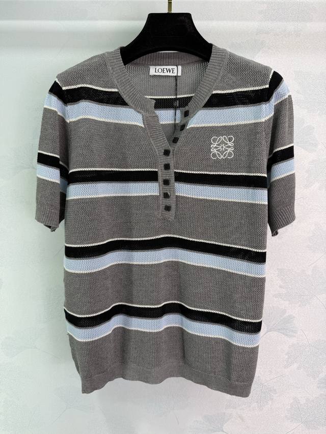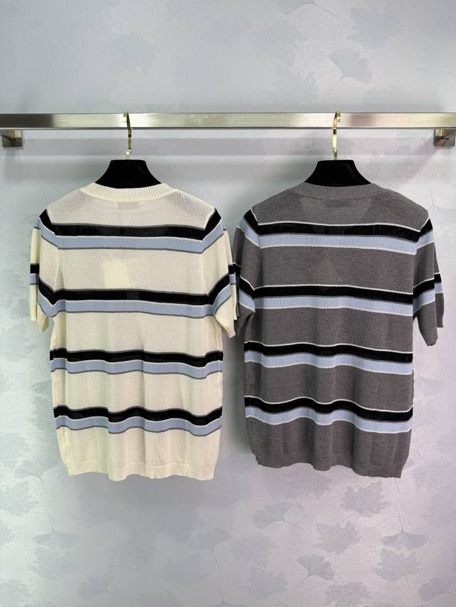 Loe*25 Spring and summer new knitted V-neck short-sleeved classic timeless striped contrast stitching design with letter logo on the chest Regular version Simple, fashionable and versatile 2 colors and 3 sizes Sml. T226B