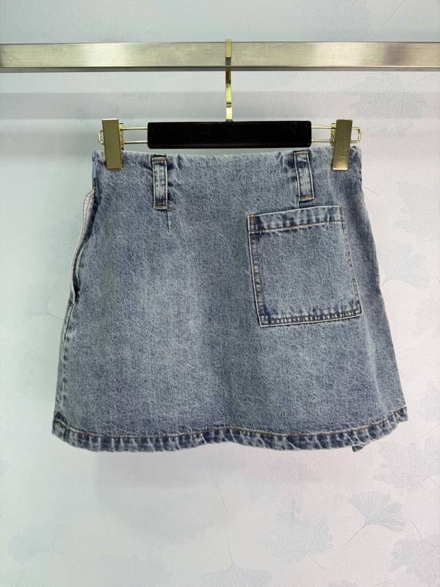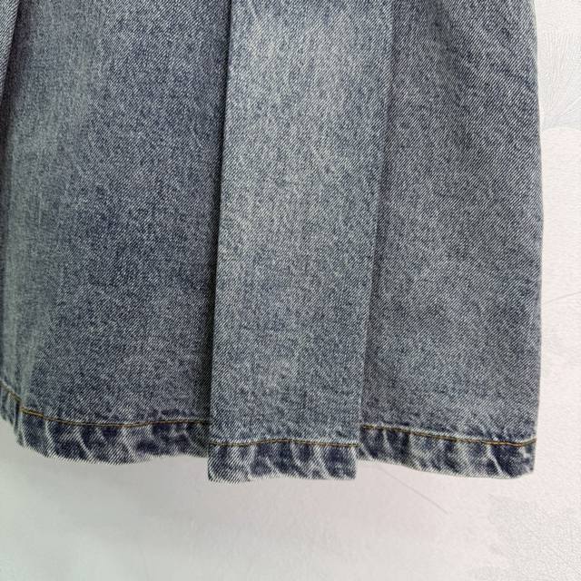 Loe*26 Early Spring New Arrival - High-Sophistication and Stylish Outfit! Pleated Leather Patch Denim Skirt. Vintage Denim with Enzyme Wash Process. Leather Patch Belt Design. Versatile and practical with a stylish design! A must-have for casual and chic commuting, made with custom twill pure cotton denim washed fabric that is crisp and comfortable! 1 color, 3 sizes: S, M, L, T226B. DDD
