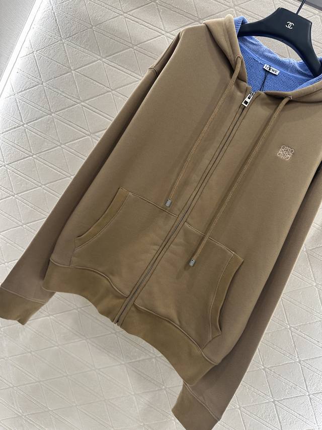 Color-blocked Hooded Zip-up Jacket. Made of custom Yb twill cotton, this high-quality jacket boasts a luxurious sheen and a sophisticated look. A versatile hooded jacket with a contrasting sky-blue lining adds design detail. The adjustable zip-up closure offers a relaxed feel, while the large pockets with a drawstring leather design create a casual street style. Embroidered graphic patterns on the chest highlight the brand's identity. Stylish and simple yet fashionable. Custom fabrics and accessories, look for the high-quality version