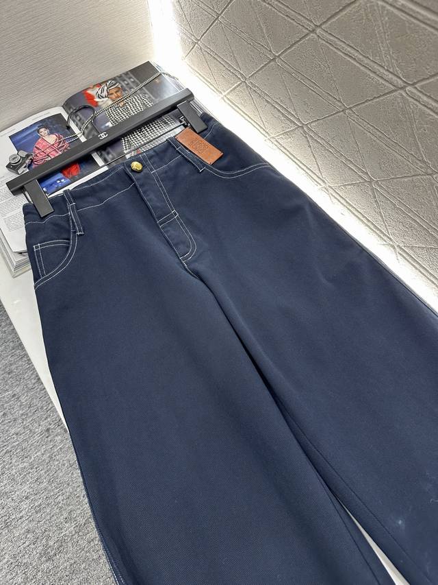 wide-leg jeans with leather label. Made of custom Yb twill cotton denim, the fabric is soft, comfortable, and breathable. Repeated enzyme washing process gives the waist, hips, and knees a natural, retro, solid color for a more refined look. The engraved round buckle and totem leather label at the waist instantly elevate the brand's style. The high-waisted, straight-leg, wide-leg design is effortless and age-reducing, while also shaping your legs for a relaxed, casual look. Perfect for vacations, dates, and everyday wear, custom fabrics and accessories are available. Look for the high-end