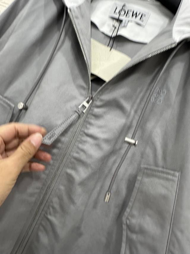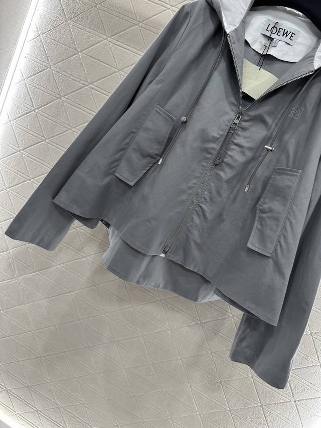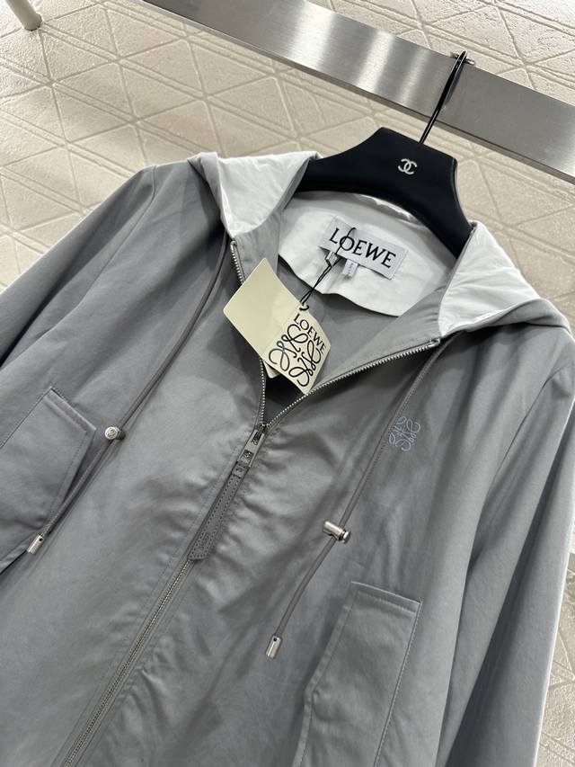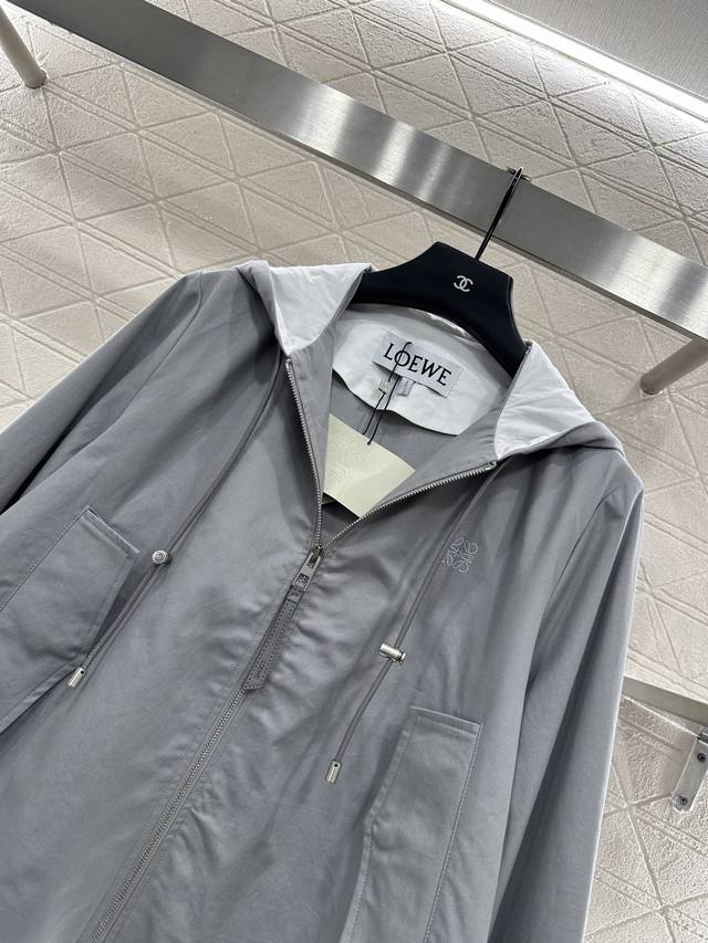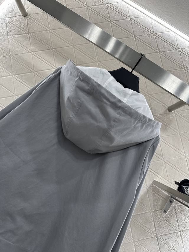 lapel hooded drawstring jacket. Made of custom Yb twill cotton, this jacket is refined and comfortable. This cape-style windbreaker features a slightly flared A-line design and a hooded drawstring. The straight shoulders create a relaxed and elegant look. The short front and long back silhouette subtly highlight the brand's design. Symmetrical flap pockets enhance the look, while the chest logo creates an elegant silhouette. This must-have piece combines fashion and practicality, making it a stylish and practical everyday trench coat. Layer with it for a casual and elegant look. Custom-made fabrics and accessories are available. Look for the latest version.