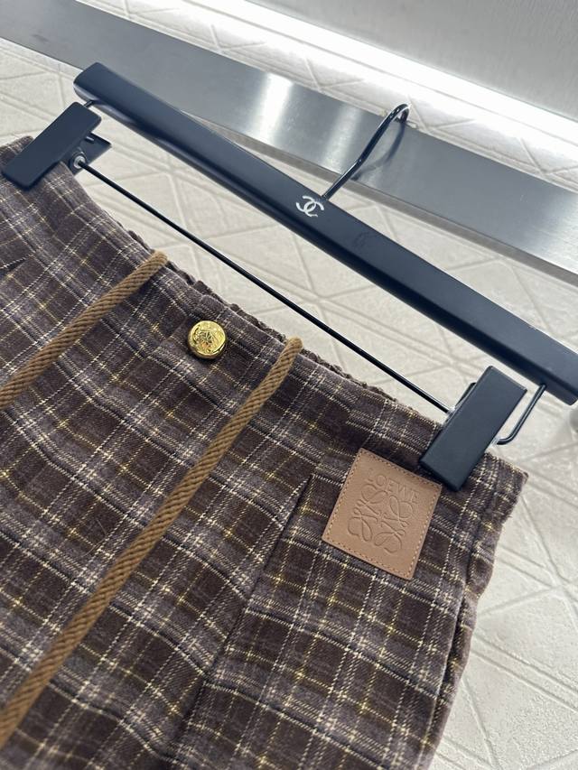 plaid drawstring casual wide-leg trousers. Made of custom Yb twill cotton, the fabric is soft, comfortable, and drapes smoothly. High-waisted wide-leg trousers with a contrasting plaid pattern. The drawstring at the waist creates a unique design effect, and the iconic leather letter logo on the pockets instantly enhances the brand style. The straight-leg design accommodates and modifies the leg shape while showing a full high-street fashion style. A versatile pair of trousers for all seasons. Perfect for vacations, dates, and daily wear. Customized fabrics and accessories. Look for the high-end version