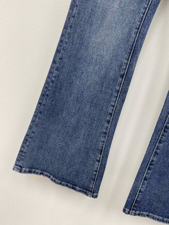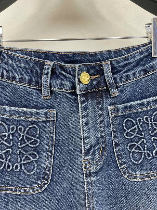Loew* 25 Early Fall new logo-embossed double-pocket flared jeans! High-top cut! These jeans are a must-have this year, and the fit is super nice! The flared shape instantly creates a perfect waist-to-hip ratio! The effect is superb, saving those rounded legs, slimming them down and heightening them. They lift the arms and shape the hips, visually stretching your body proportions for a truly stylish and visually slimming look. It's a stylish and sophisticated way to achieve this look! Sml Aa.