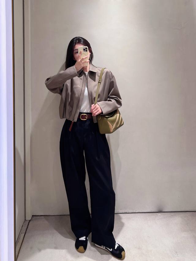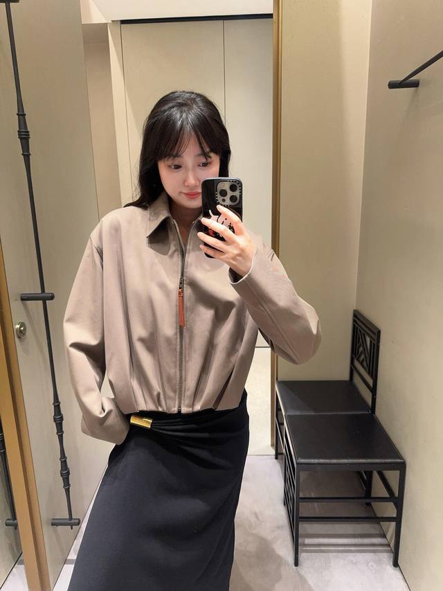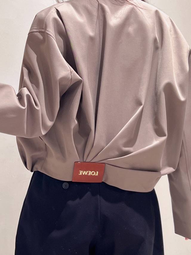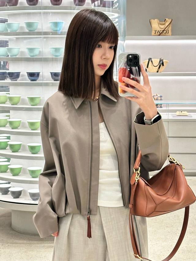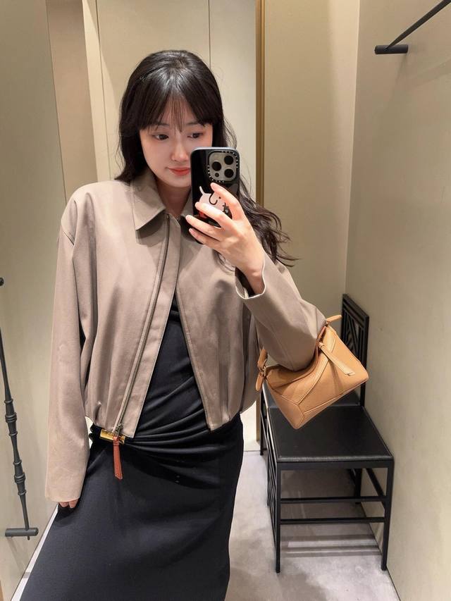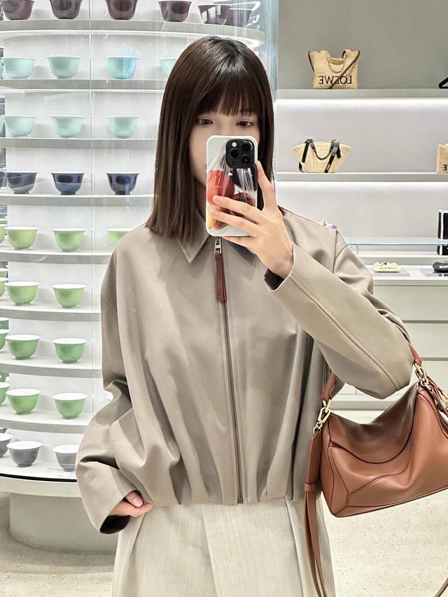 Loew* 25Fw Autumn/Winter New Balloon-Shaped Short Jacket | Exclusive Yb Development! High-Quality Production! Presented in a soft light brown tone, it's simple yet sophisticated. The front features a clean lapel and zipper design, while the asymmetrical hand-pleated back is the finishing touch, natural and casual like art, breaking the conventional sense of order and injecting dynamism and creativity into the overall look. It's paired with the brand's signature leather patch, subtly showcasing the brand identity. Whether for everyday wear or layering with other items, it easily demonstrates unique fashion taste and personal charm. Available now in sizes S, M, L, D.D.