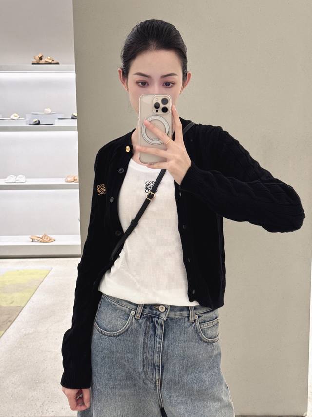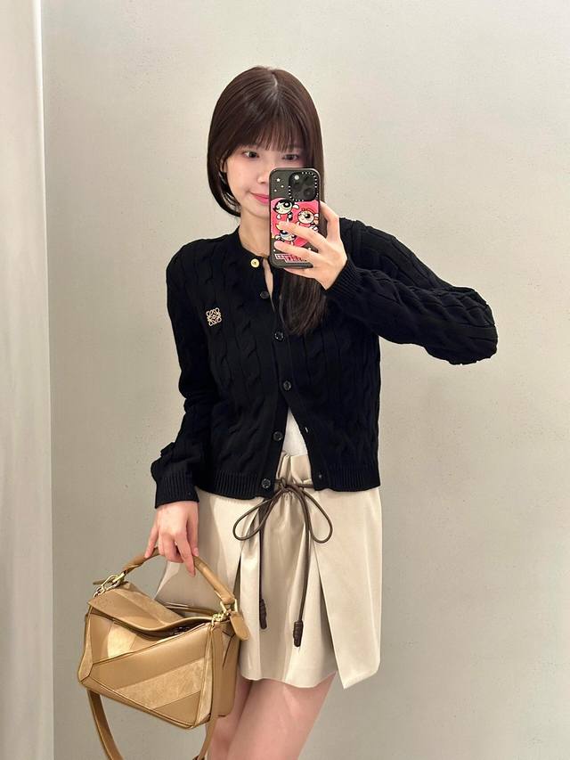 Loew* 25Fw Early Autumn New Micro-logo Embroidered Cable Knit Cardigan | Exclusive Yb Development! High-Quality Production! The classic cable knit texture is presented three-dimensionally on the knit fabric. The brand logo embroidery on the chest is like an artistic embellishment. The clean, short cut is a secret weapon for optimizing body proportions. Wear it with a camisole for a French relaxed style, or layer it with a white T-shirt for an instant American retro look. Whether paired with high-waisted pants for a sophisticated aura or with a skirt for a sweet and edgy style, this one piece can handle countless fashionable possibilities for early autumn. Available now in sizes S, M, L, DDD