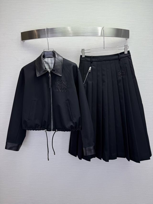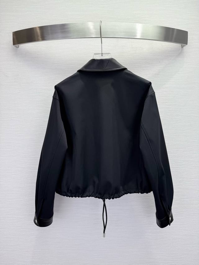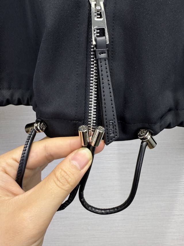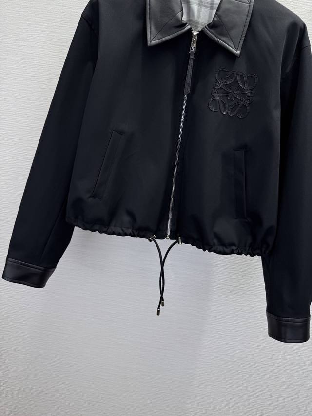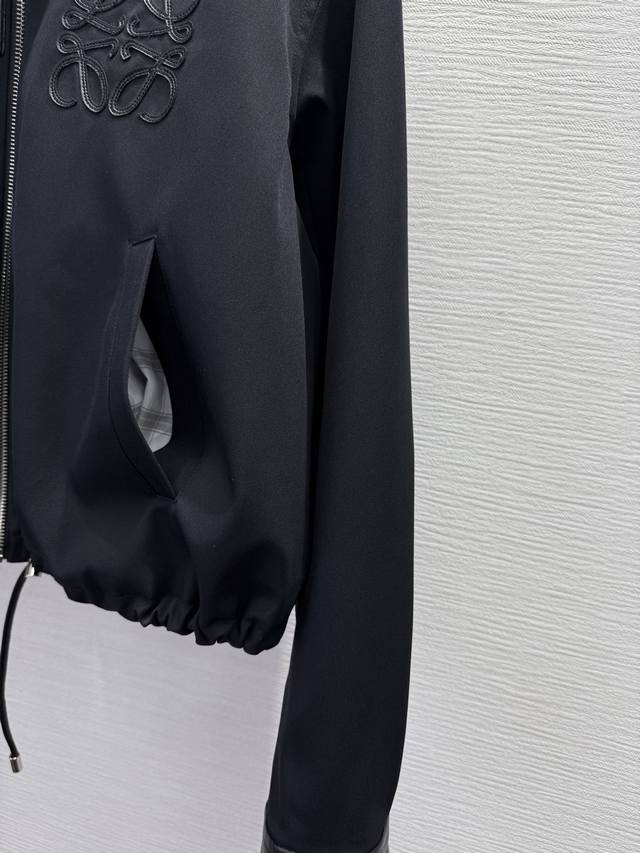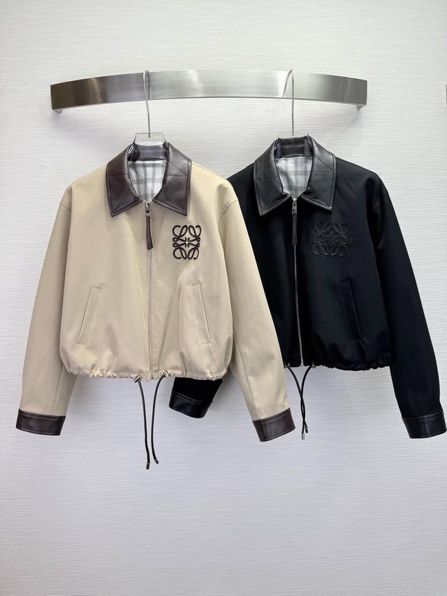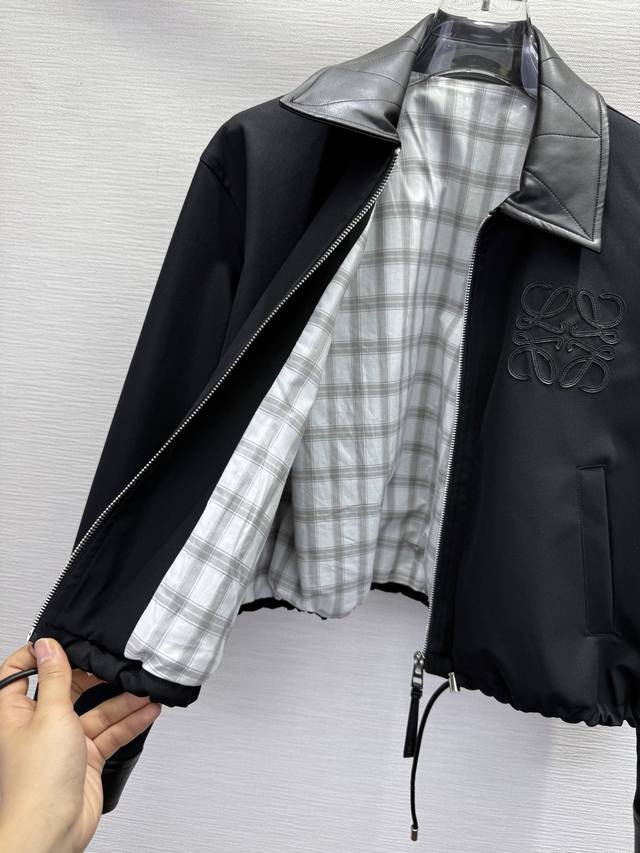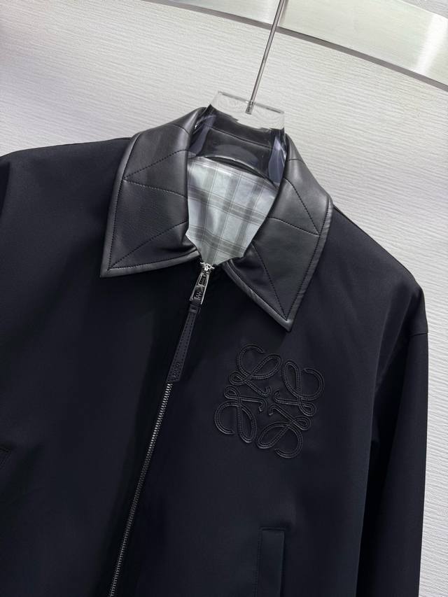 Loew* 25Ss Autumn/Winter New Leather Collar Jacket with Logo Patchwork Embroidery Decoration, Drawstring Elastic Design at the Bottom Corner, Casual and Stylish, Two Colors, Three Sizes: Smlb808p. DDD