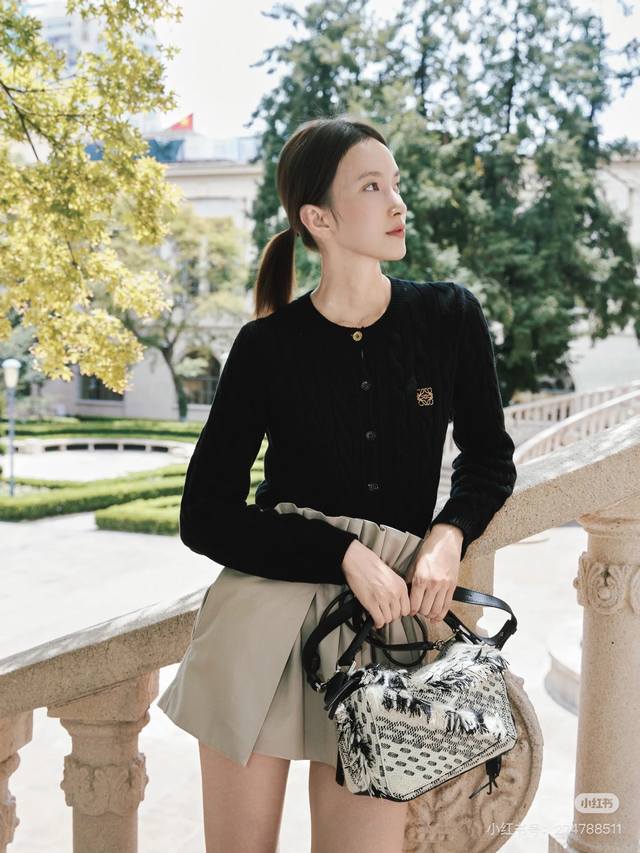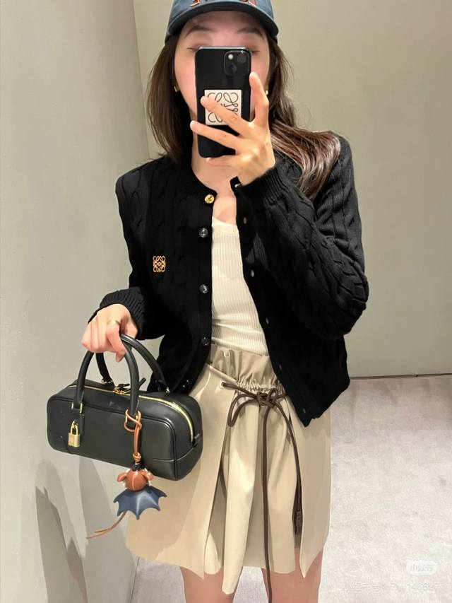 Loew* New Customized Chest Embroidered Logo Cable Knit Slim Fit Button-Down Round Neck Long Sleeve Knit Cardigan! Pink, Black One Size: Shoulder Width 37cm, Bust 88cm, Sleeve Length 58cm, Length 55cm DDD