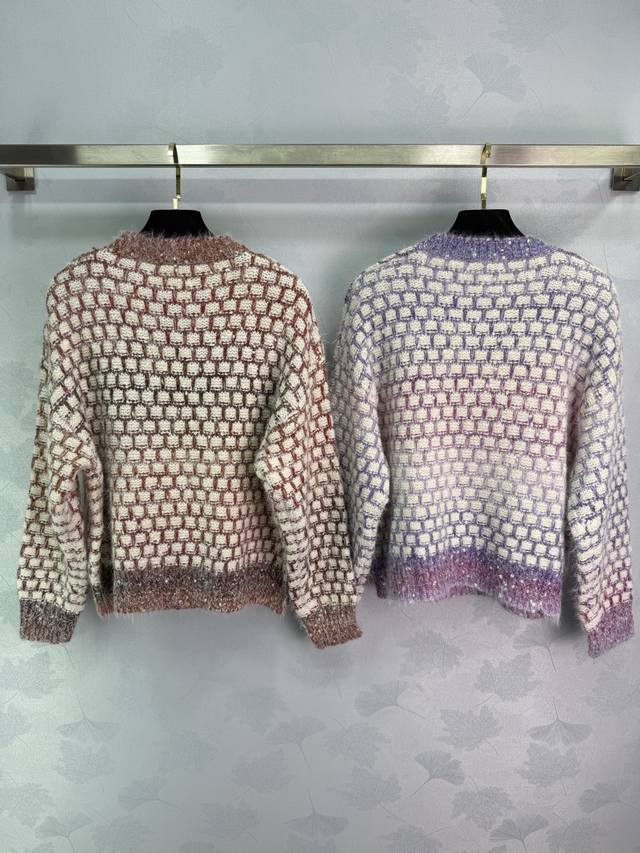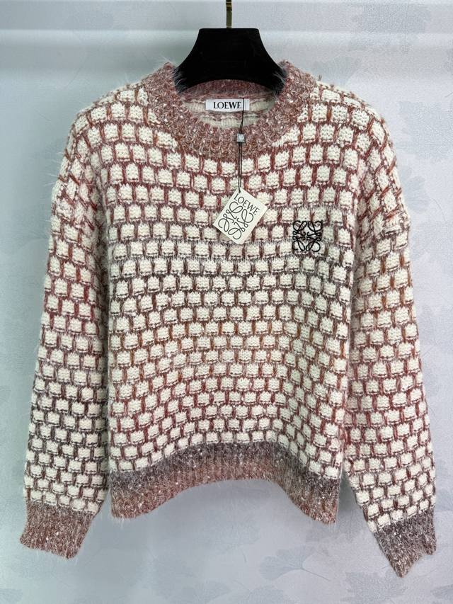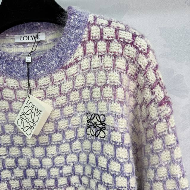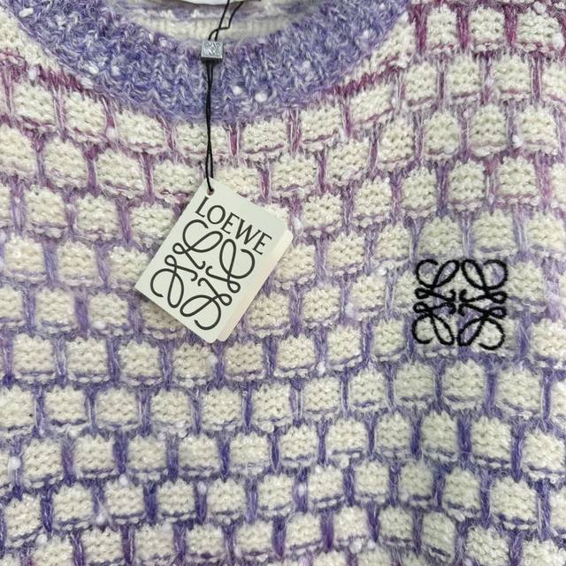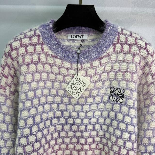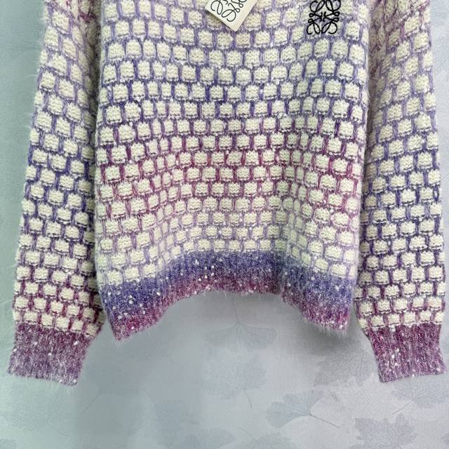 Loew*2025 Autumn/Winter New Gradient Crew Neck Pullover Sweater! Made with custom imported wool and mohair, it's warm and comfortable, perfect for autumn and winter! The pink and white + purple gradient color scheme exudes elegance and sophistication. The loose fit and delicate knit texture, adorned with a small badge on the chest, add a touch of detail. Easily suitable for everyday commuting or casual wear, it pairs beautifully with jeans or skirts, creating a gentle and stylish look. Available in 2 colors and 3 sizes: S, M, L, T, 226B, DDD