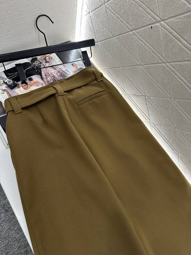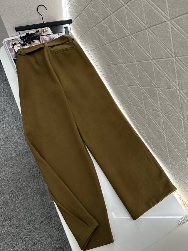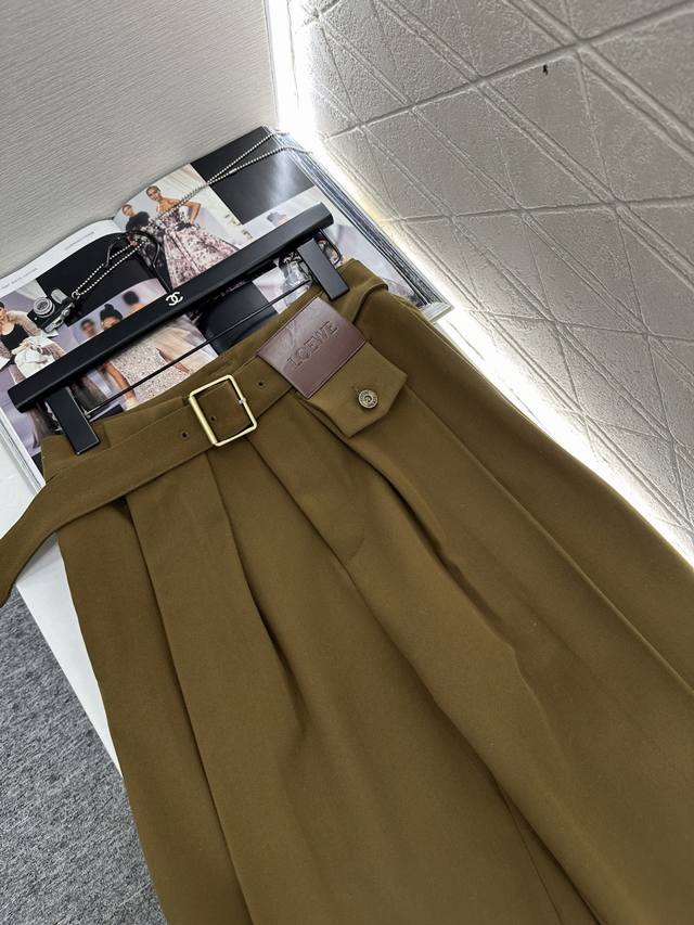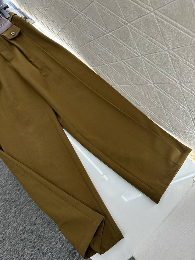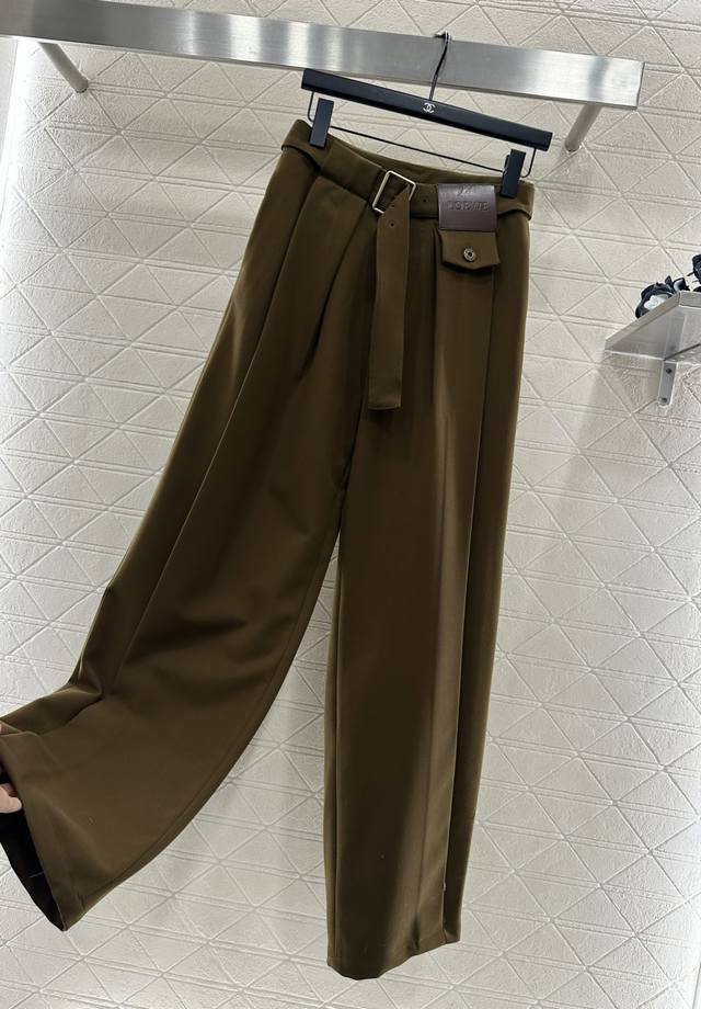 Loew*2025 New Arrival DDD Belted Carrot Wide-Leg Pants DDD Custom-made imported Yb material, textured and lustrous, comfortable to wear, with a flattering drape. Features a perforated waistband with a leather square label and lettering, showcasing brand identity and style. Pleated design at the waistband and flap pockets add depth and a fashionable touch. The carrot-leg design is wide at the top and tapered at the bottom, creating a slimming and flattering silhouette, showcasing a trendy and fashionable style. Custom-made fabrics and accessories, please ensure you choose the high-quality version. DDD
