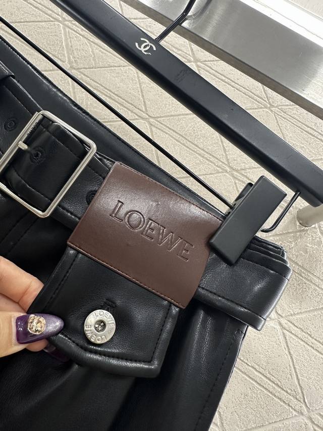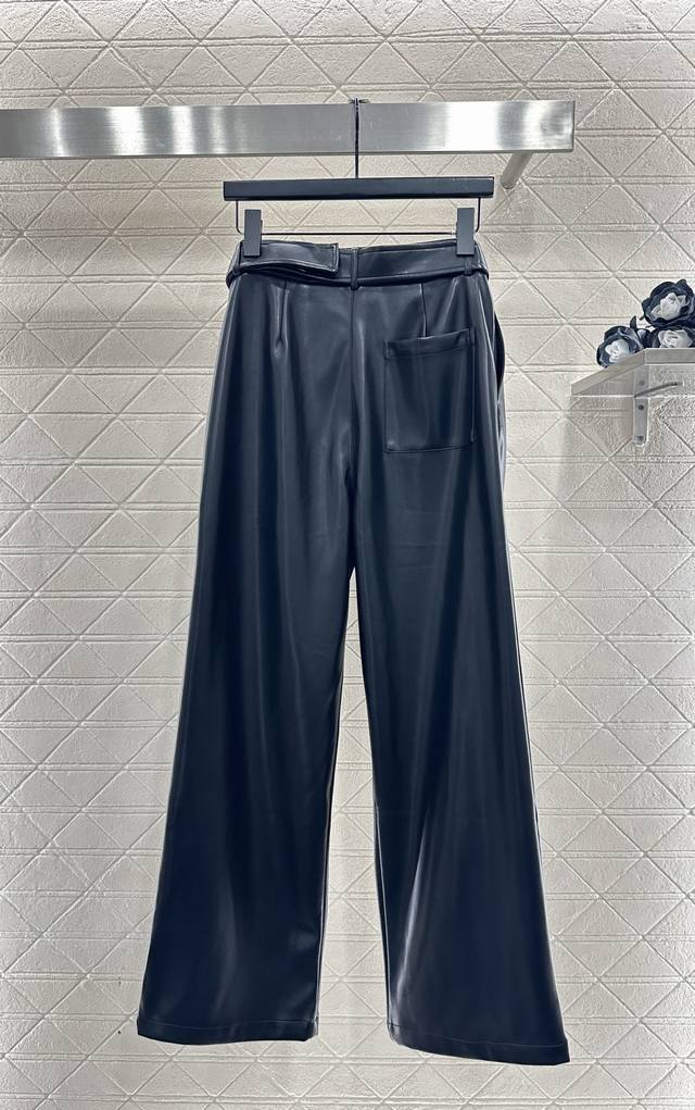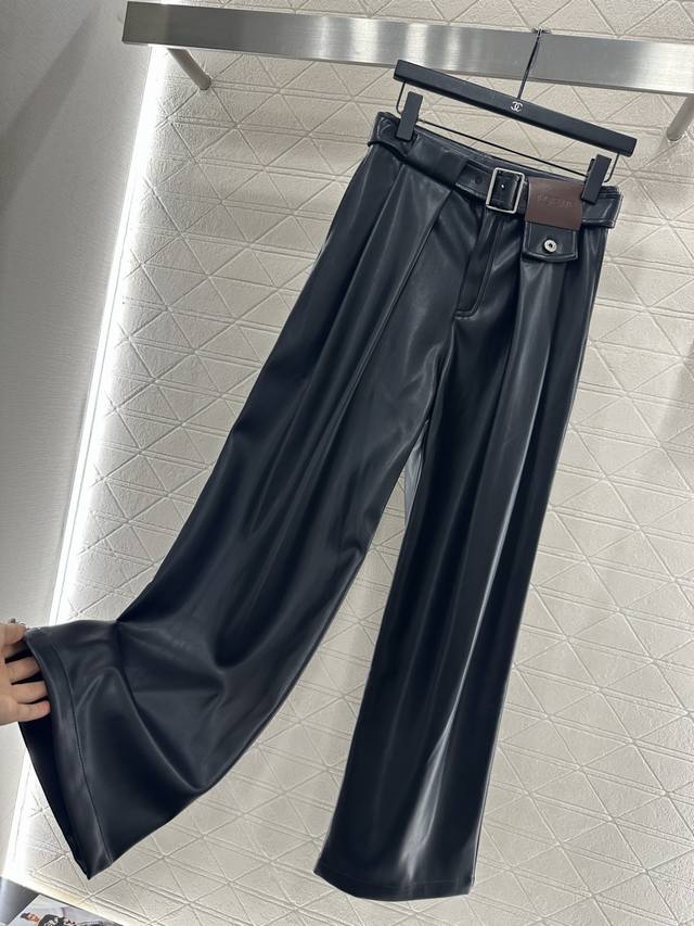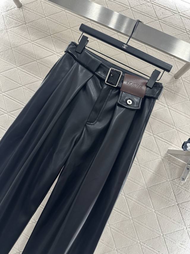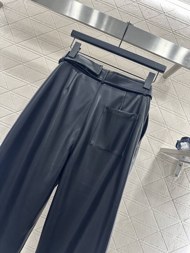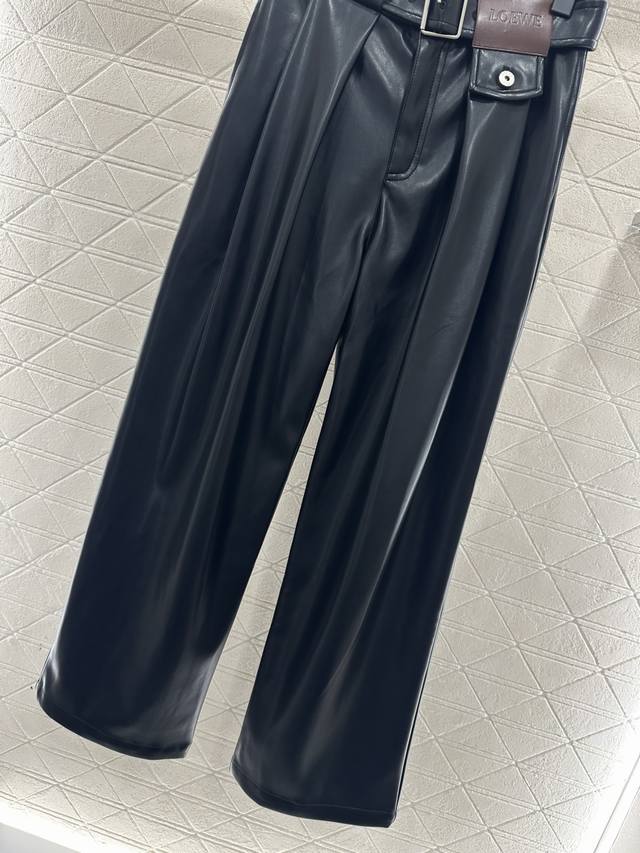Loew*2025 New Arrival DDD Belted Pleated Wide-Leg Leather Pants DDD Custom Yb imported leather material, textured and glossy, comfortable to wear, with a flattering drape. The inner lining is brushed short fleece, suitable for autumn and winter transitions. The waistband features a perforated belt with a leather square logo and lettering, showcasing the brand's style. The pleated design at the waistband and flap pockets add a layered look, making them fashionable and chic. The three-dimensional cut is slimming and flattering, showcasing a trendy and fashionable style. Customized fabrics and accessories, please look for the high-quality black version DDD