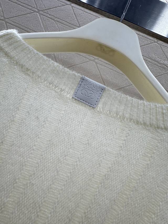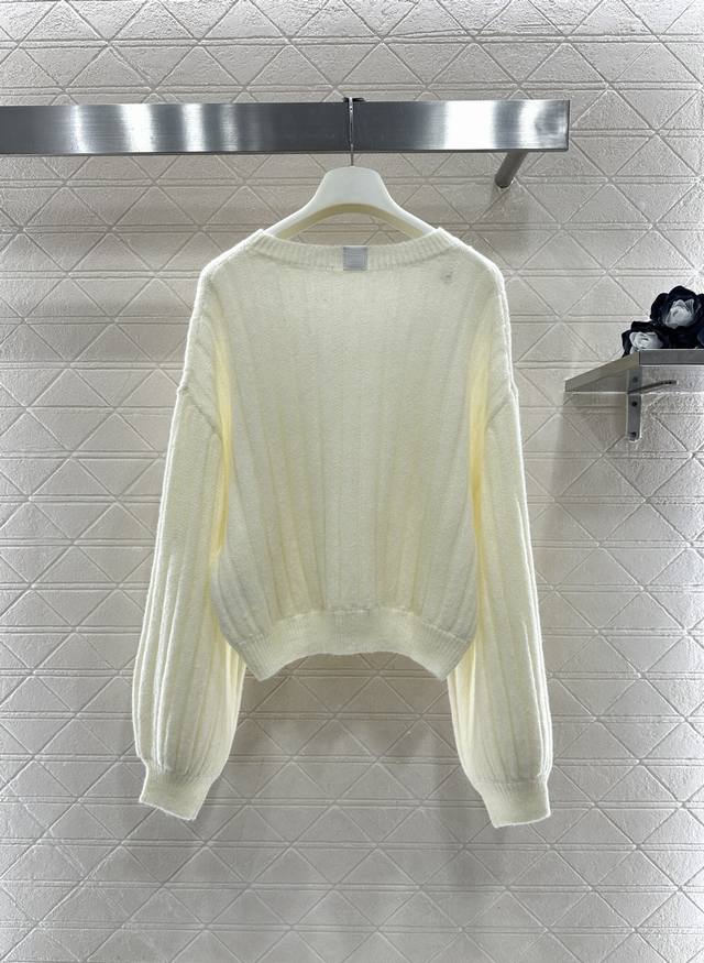 Loew*2025 New Arrival Ddd Clean Line Lantern Sleeve Knit Sweater. Made with custom Yb cotton yarn, this sweater is comfortable and high-quality. Features a round neck, dropped shoulders, and a pullover design. The sweater has a vertical ribbed texture throughout, with a leather label and logo printed on the back collar. The lantern sleeves add a touch of cuteness and dimension. The loose, regular fit is stylish and fashionable. Custom fabrics and accessories are available in high-quality versions in two colors: red and white. DDD