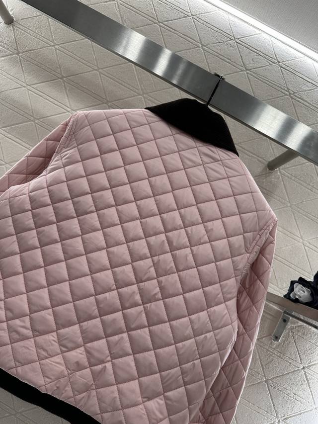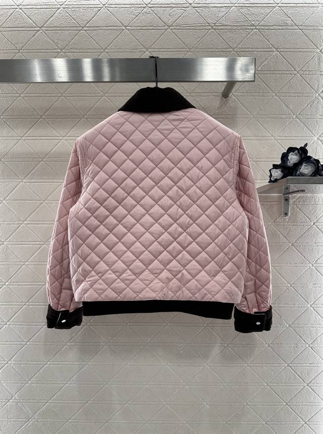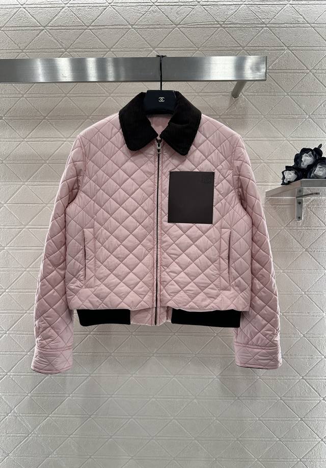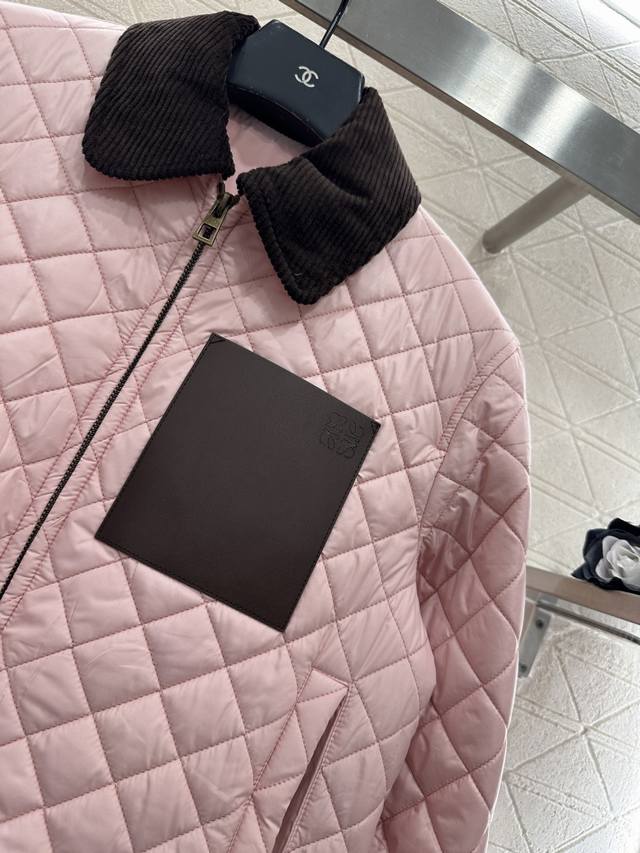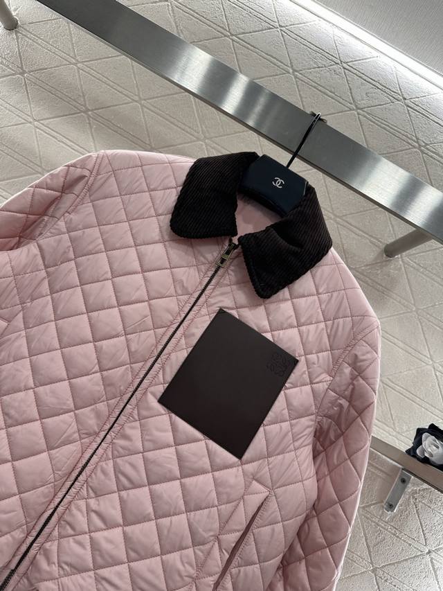 Loew*2025 New Arrival Ddd Corduroy Collar Diamond Pattern Cotton Jacket Ddd Custom Yb Windproof and Waterproof Nylon Material, Down Cotton Filling Lining, Lightweight and Warm, Corduroy Collar Contrast, Ribbed Hem Contrasts Color, Lapel Zipper Jacket, All-over Diamond Pattern Embossing, Leather Embossed Logo on Chest, Reflecting Brand Concept, Short and Loose Fit, Flattering Figure, Stylish and Trendy. Custom Fabrics and Accessories, High-Version Pink DDD