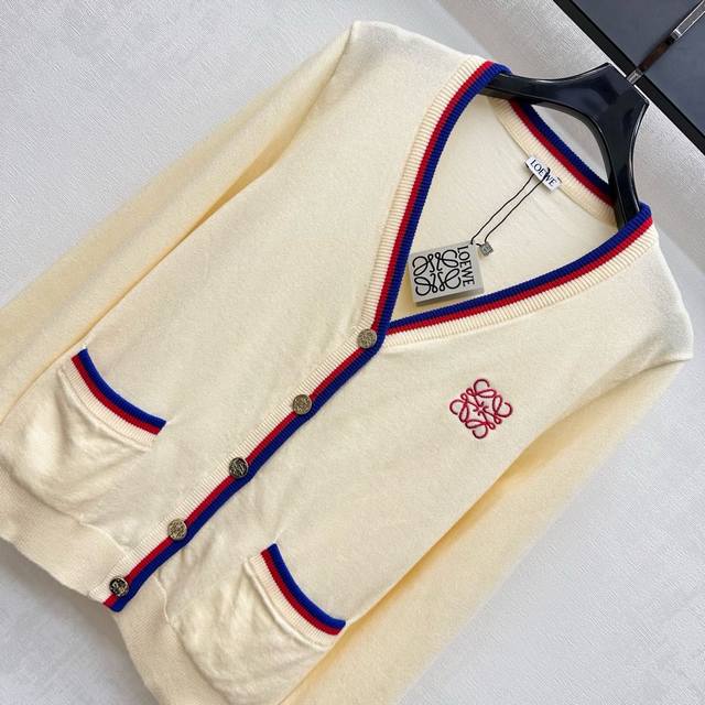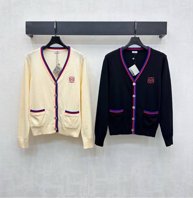 Loew*2025 New Arrival Striped Knit Cardigan Custom Made YB Imported Wool Knit Material Soft, Comfortable, Stylish, Slimming Neckline Extends to the Hem with Contrast Ribbed Trim Echoing the Pockets and Cuffs for Layered Design. Signature Heavy Metal Engraved Buttons Adjust the Front. Signature Embroidered Logo Embroidered on the Chest Highlights the Brand's Stylish Design. Fabric and Accessories Developed V-Neck Knit Cardigan Cut for a Simple and Elegant Look, Perfect for Layering in Fall and Winter. High-End Version in Two Colors.