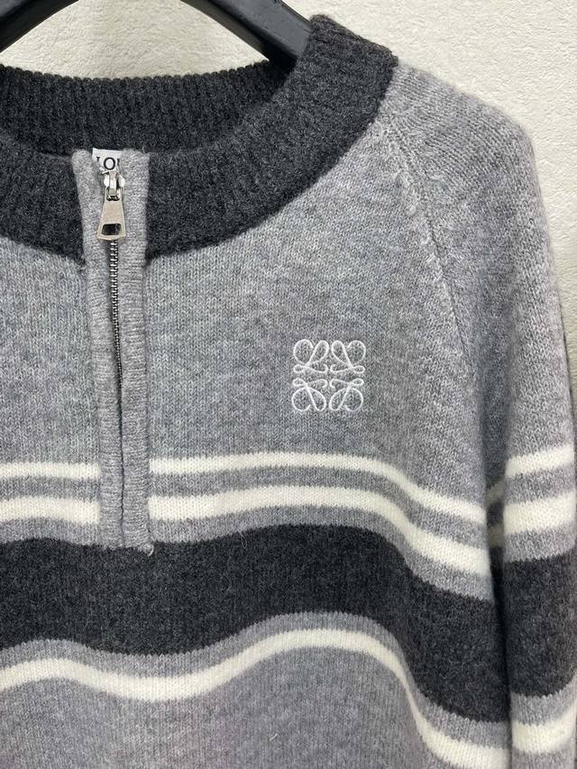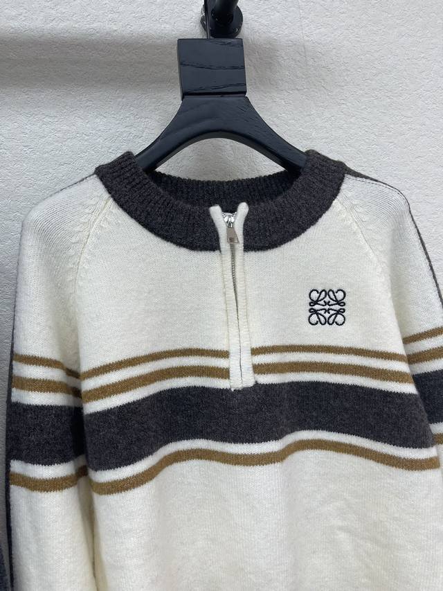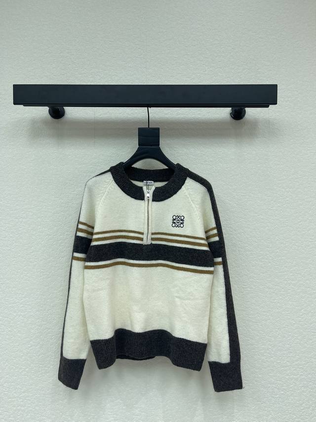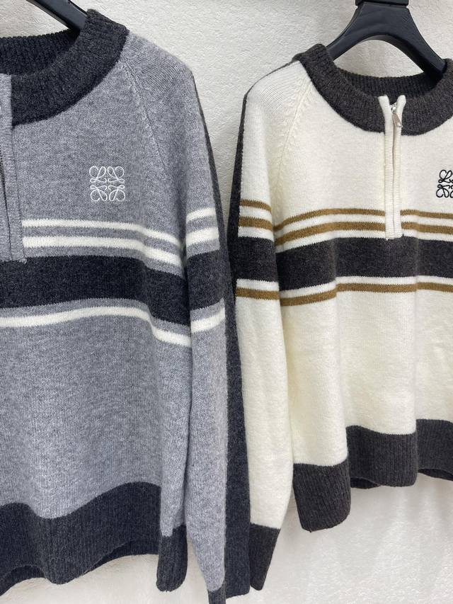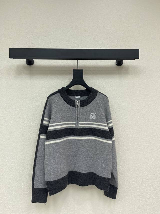 Loew*26 Early Autumn New Half-Open Zipper Pullover Knit Sweater! Made with custom wool blend yarn, this sweater boasts a high-quality, comfortable, and soft texture with a distinct pattern. The neckline and cuffs feature ribbed trim, while the body is adorned with contrasting stripes and an embroidered logo on the chest, adding a rich sense of layering. The regular slim fit is flattering for all body types and ages. A simple and versatile everyday style for autumn and winter! Sml Aa DDD