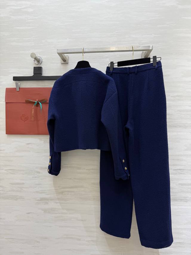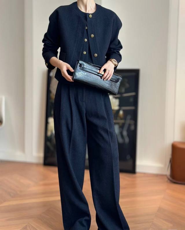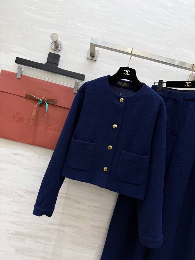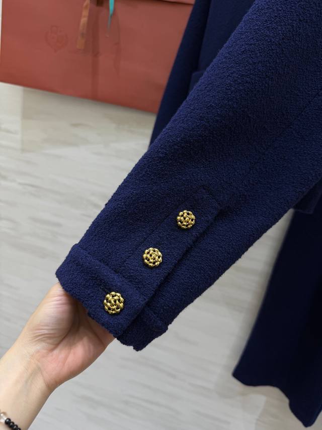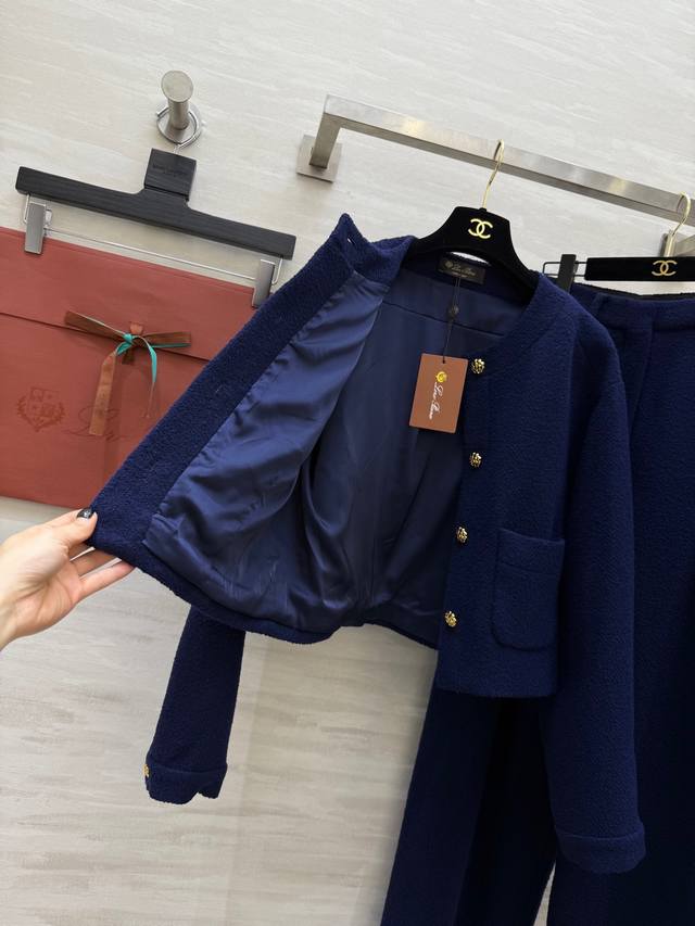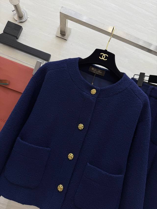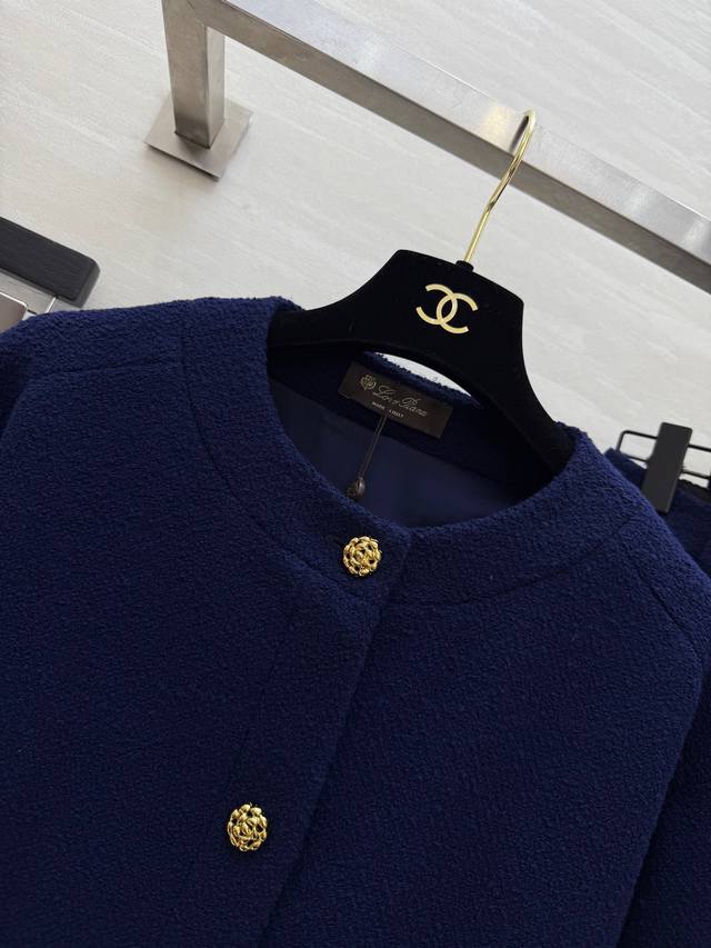 Loro pian2 Autumn/Winter New Tweed Coat, Dark Blue with Metal Buttons, Vintage Wool Blend Tweed, Thick and Warm, Perfect for Autumn and Winter! Clean and Elegant Cut, High-End Vintage Style, High Quality, Sold Separately. Size: SMLS, Bust: 98cm, Length: 46cm.