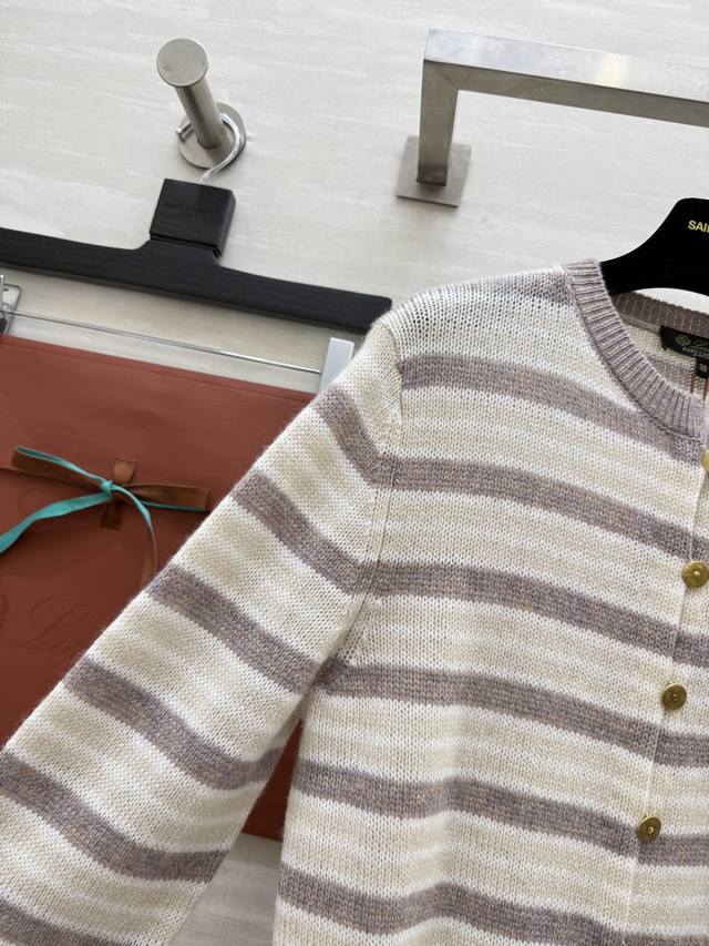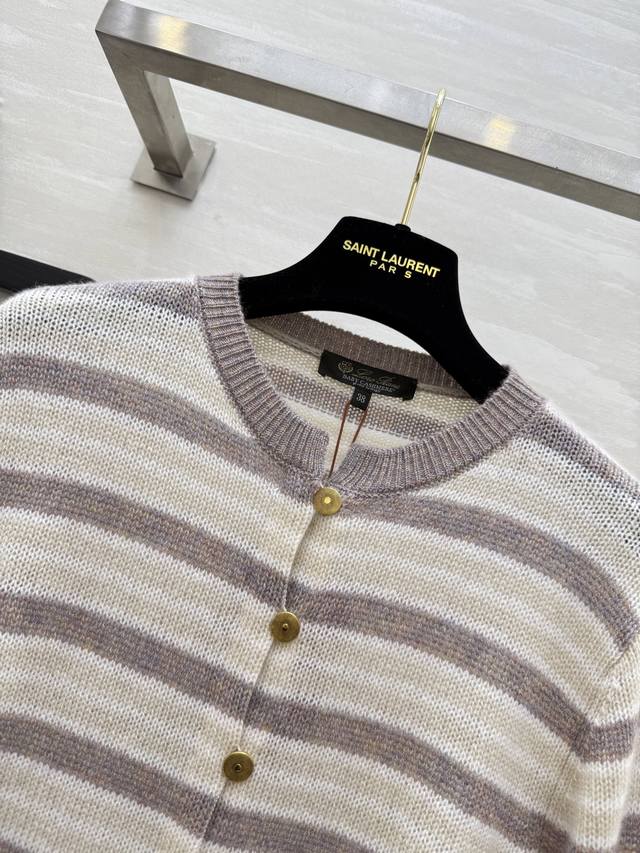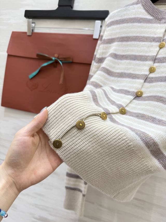 Loro piana 2Fw Fobello striped cardigan features the brand's signature Baby Cashmere goat fleece for a soft, supple feel, blending enveloping warmth with incredibly lightness. Original design, high-quality customization available. Sizes: S, M, L, D, D