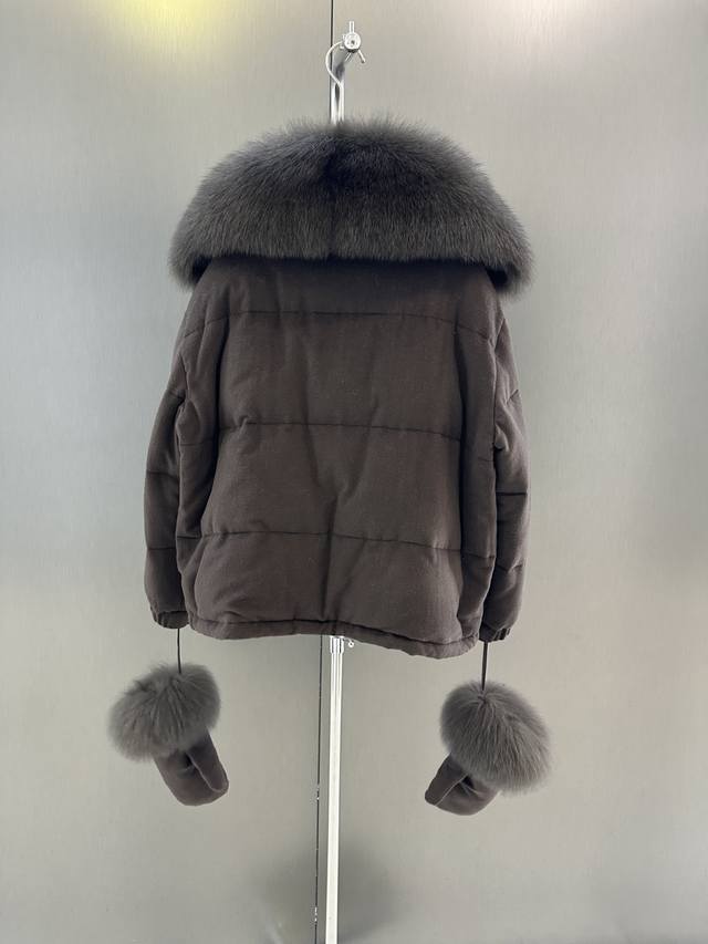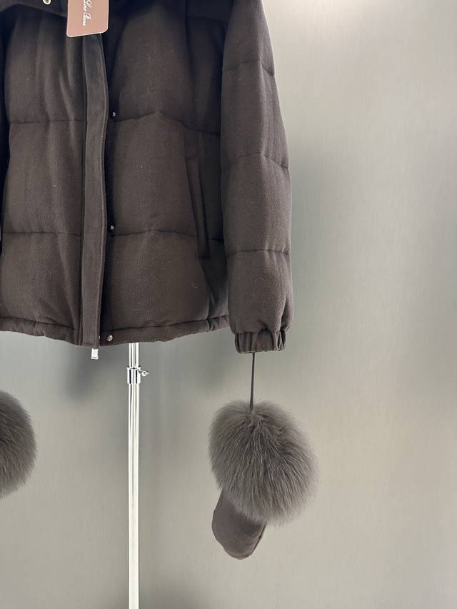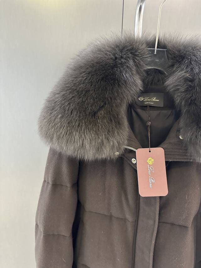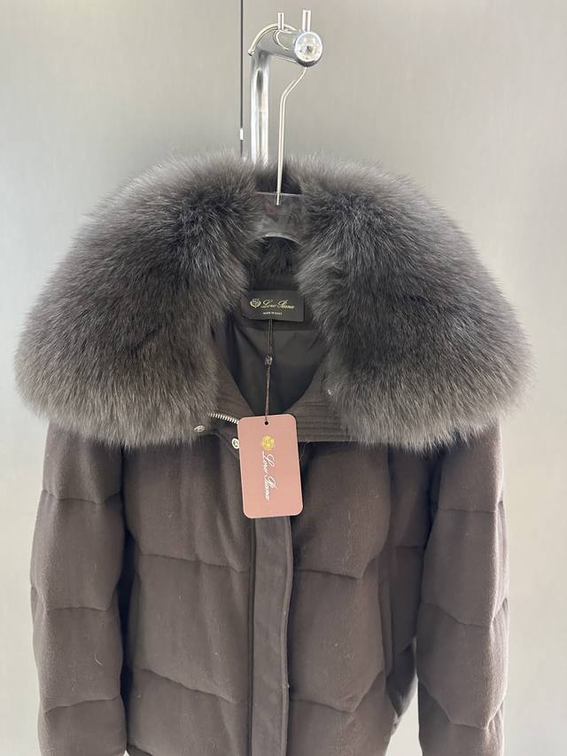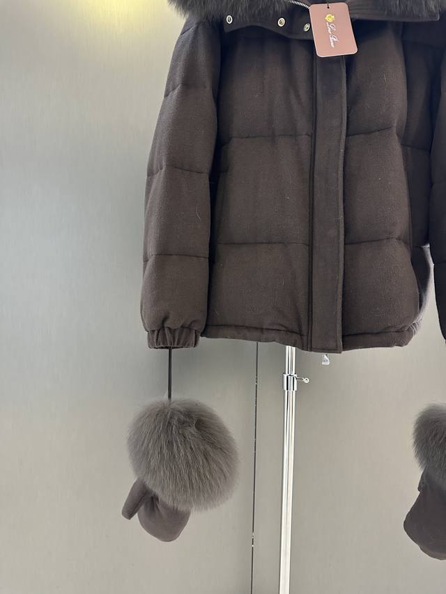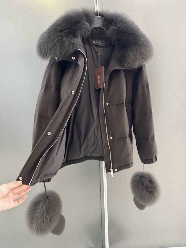 Loro Piana Autumn/Winter New Fox Fur Goose Down Jacket DDD Imported extra-large white fox fur collar with detachable p-shaped goose down filling. This year's super popular glove series. One piece for winter. Sizes S, M, L. Length 63cm, Chest 124cm, Size M DDD