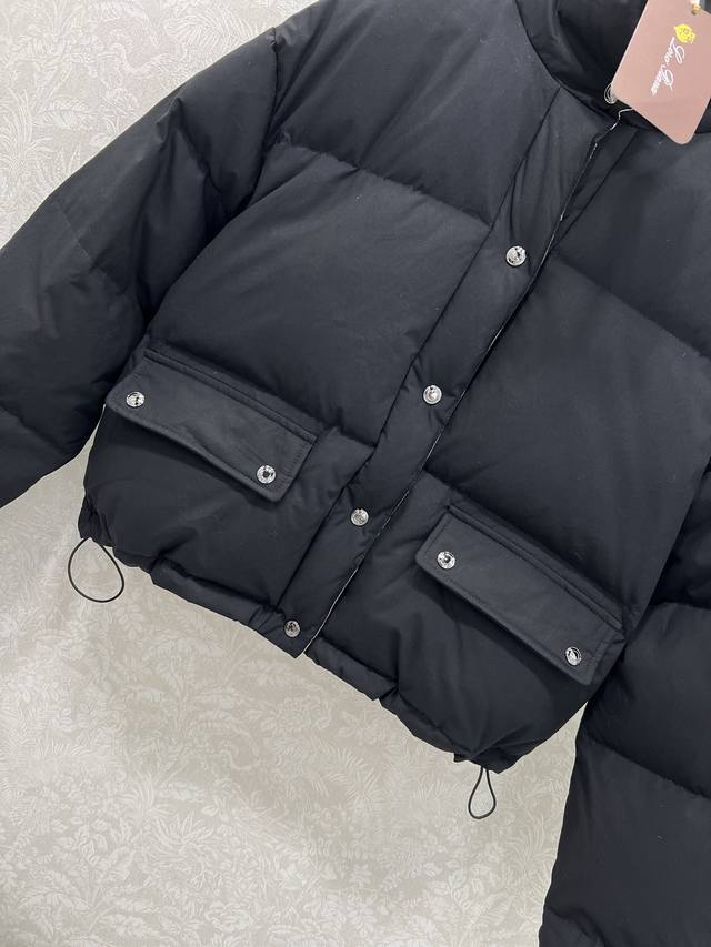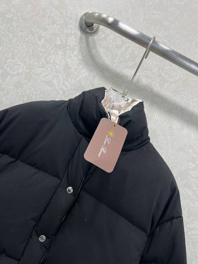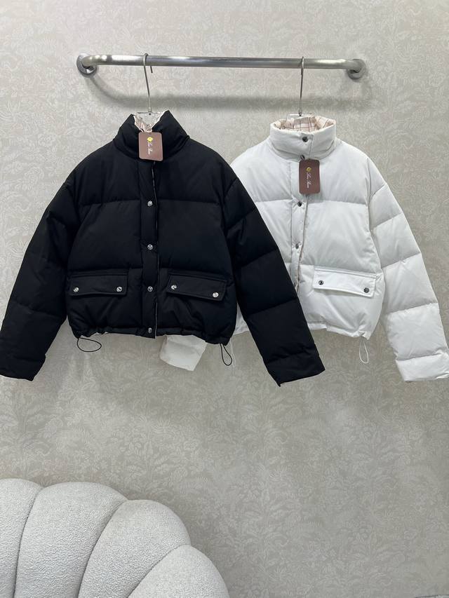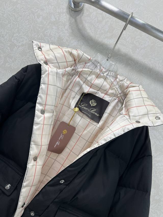 Loropiann* Lp30 New High-Luxury Minimalist Style Stand Collar Down Jacket, 90% White Duck Down, Custom Hardware. Maintaining the brand's consistent understated elegance, the overall solid color with a plaid puffer jacket lining. The drawstring hem allows for a fitted look. It's both stylish and chic. The standard down filling is lightweight and warm, and the fabric is delicate, thick, and has a classic, versatile, and flattering fit. It's incredibly slimming, fashionable, and youthful