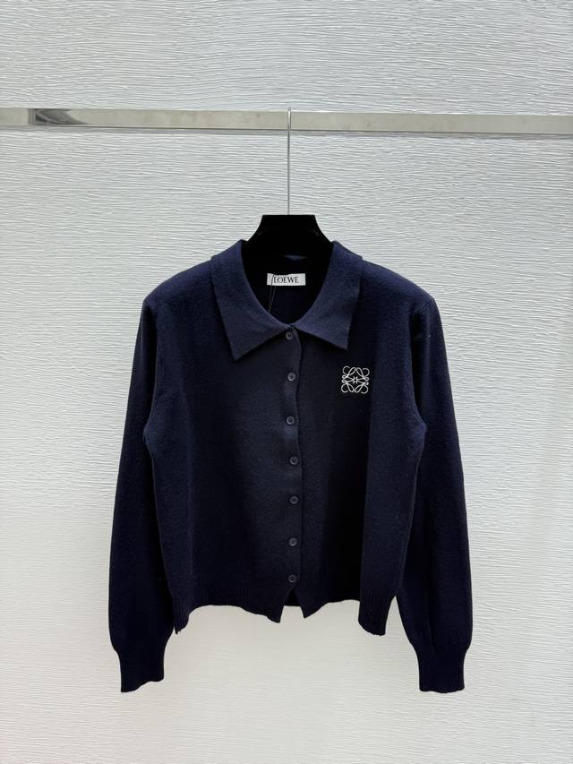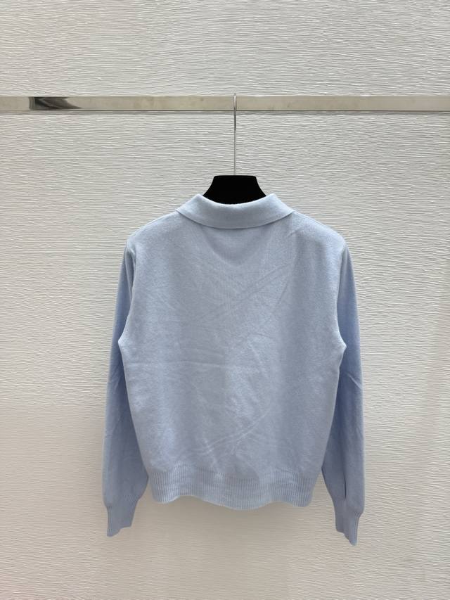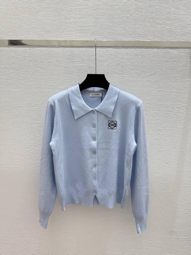 Lo's early autumn new solid color lapel knitted long-sleeved cardigan Color: blu